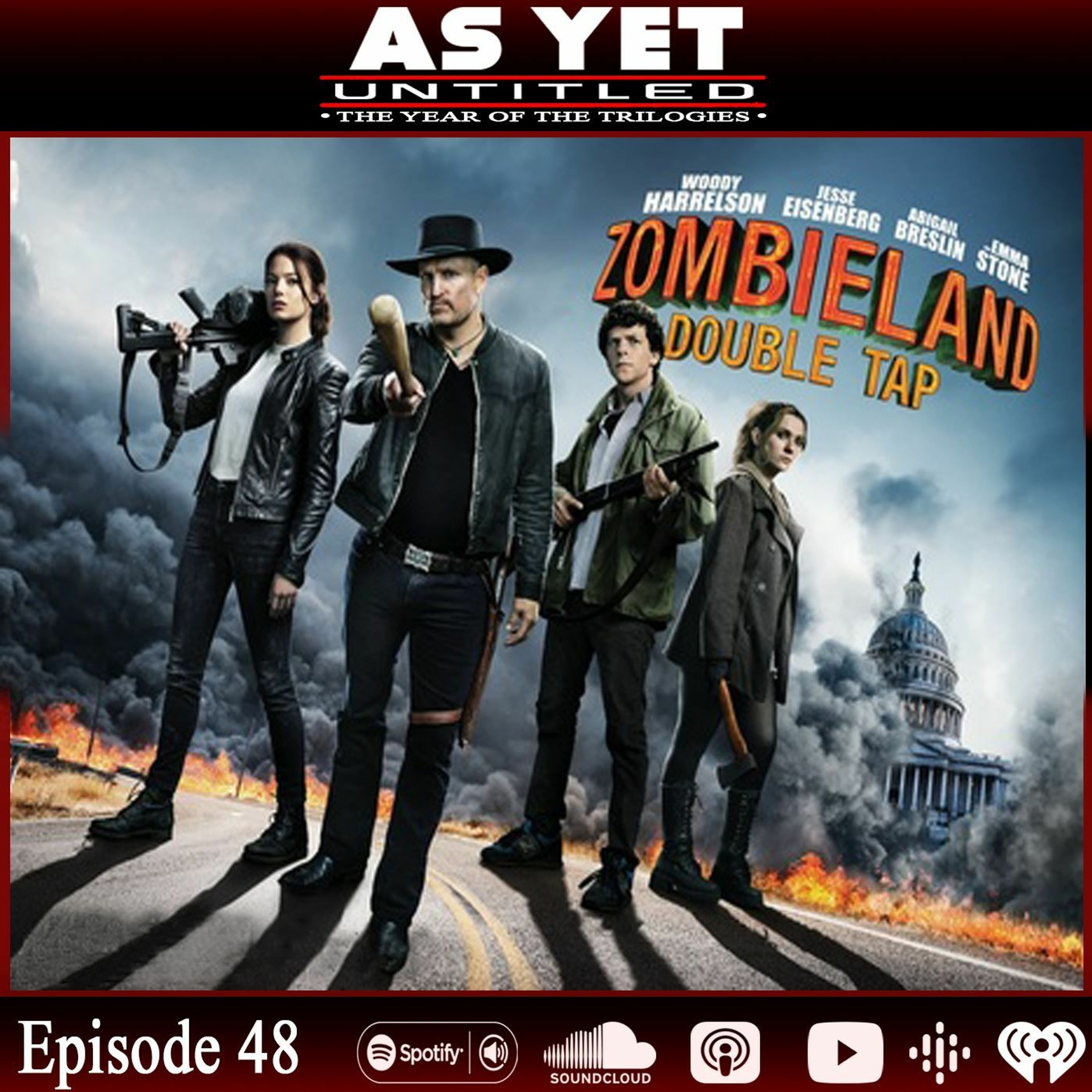 In Episode #48 Rob & Kris talk about the film sequel Zombieland: Double Tap. The guys discuss many things throughout the podcast what candle smell they would pick, new catchphrases, similarities between the films, chaps and shoes and much more. Rob talks about the diffreneces in the way the films shot while Kris rolls his eyes at the blonde. The guys go off on many tangents discussing favourite food and much more....\n\nSupport us:\n\nlinktr.ee/WeAreAsYetUntitled\n\n- for all our media outlets click the link\n\nFollow us on Twitter: twitter.com/WeAreAYU\nfollow us on Facebook: www.facebook.com/WeAreAsYetUntitled\nFollow us on Instagram: www.instagram.com/weareasyetuntitled\n\nMerch:\nshop.spreadshirt.co.uk/FrmMediaAYU\n\nRogue Energy have kindly sponsored us! bit.ly/37y7jII\nuse code AYU10 for 10% discount
