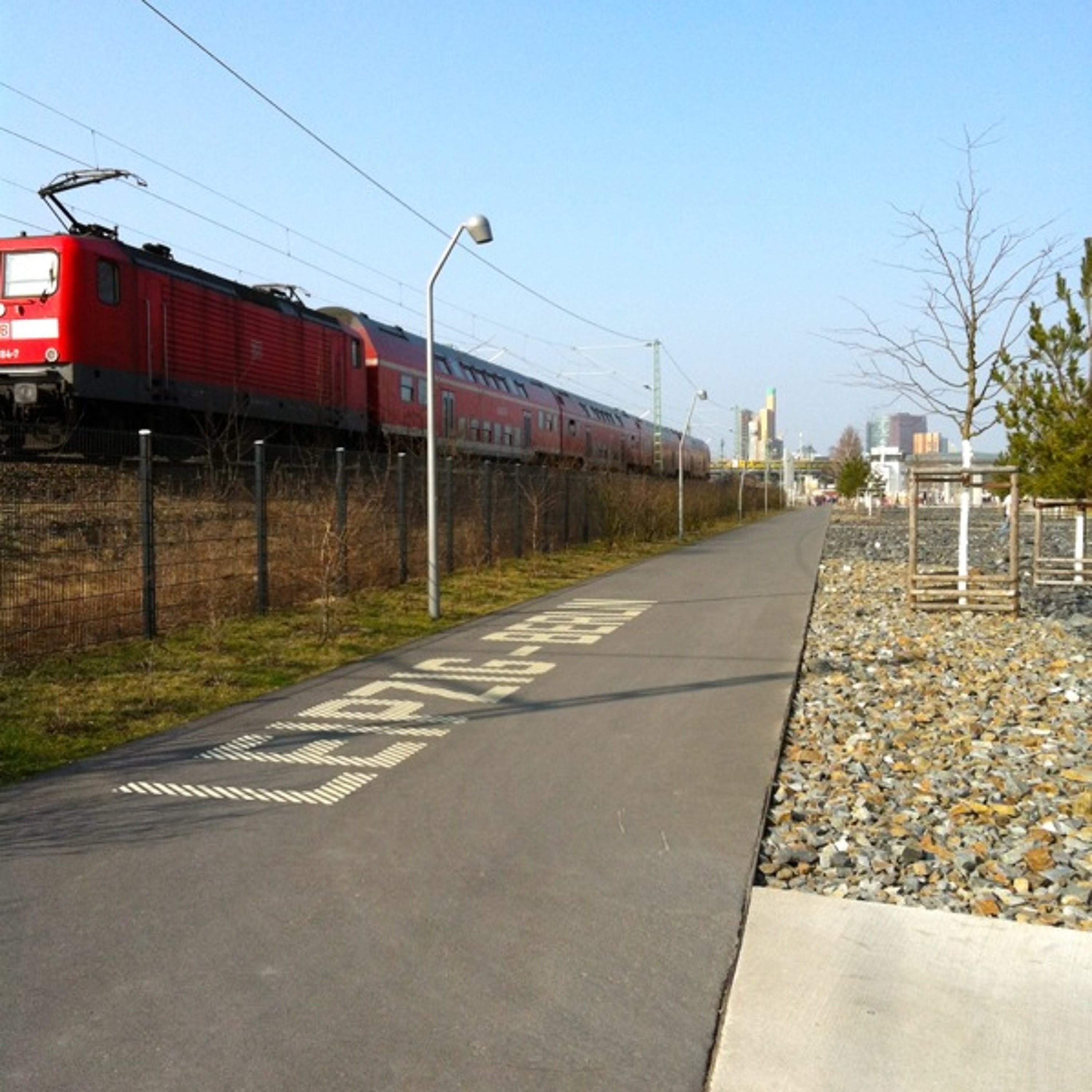Park am Gleisdreieck\n \nSituated next to the heavily serviced train line between Berlin and Leipzig there exists a park full of playing children, rollerbladers, joggers and lovers. An oscillating urban interaction between two very different poles: transport and leisure culture. // Spielende Kinder, Rollerblader, Jogger und Liebende im Park. Daneben die stark befahrene Bahnlinie zwischen Berlin und Leipzig. Eine oszillierende urbane Interaktion unterschiedlicher klanglicher Pole zwischen Verkehr und Freizeitkultur.