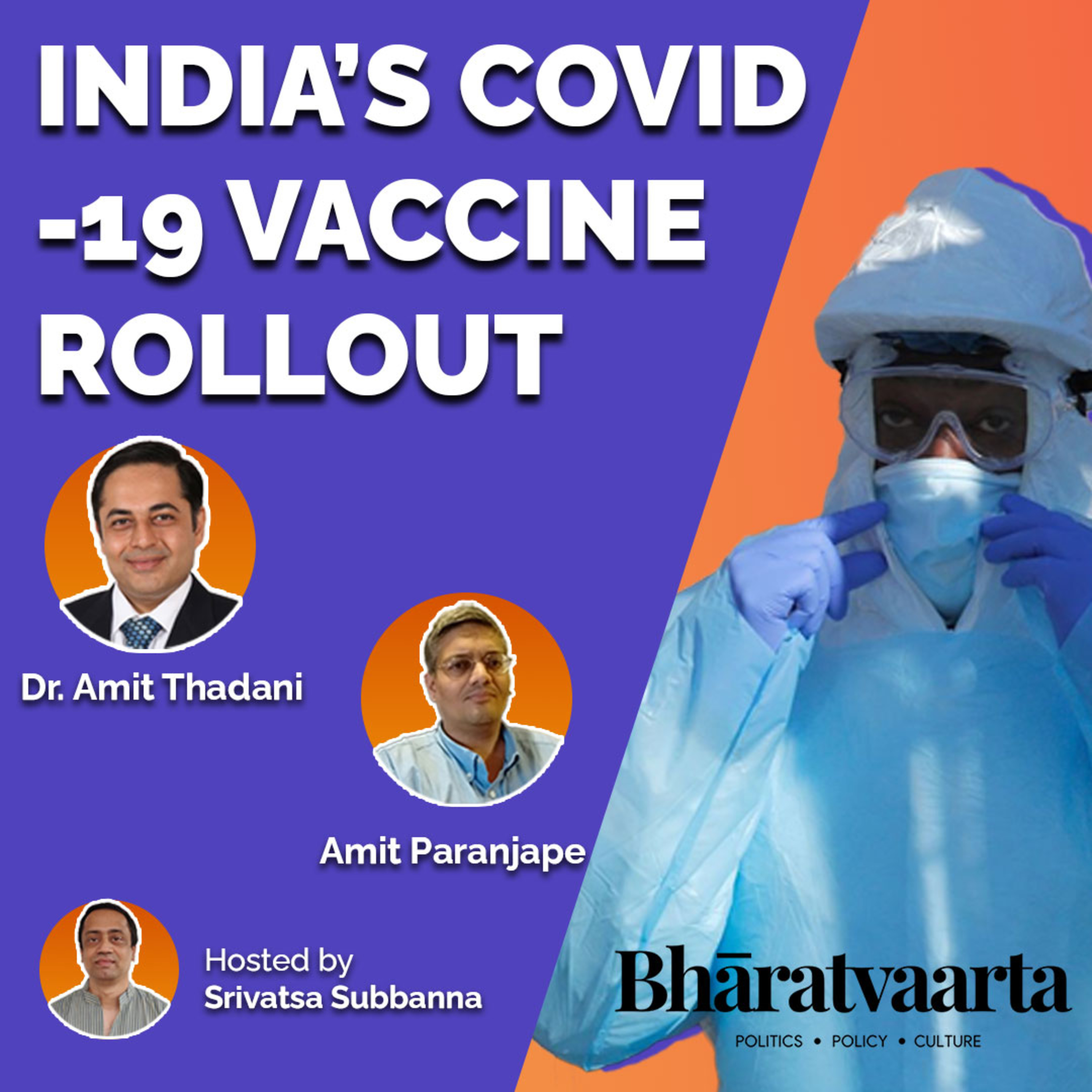 In this episode, Srivatsa Subbanna talks to Amit Paranjape (Tech Entrepreneur) and Dr. Amit Thadhani (Surgeon) about the different kinds of vaccines, the approved vaccines, how does India handle a programme of this scale, communication strategy and more.
