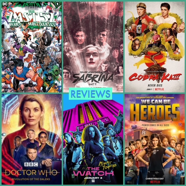 Reviews: Dark Nights: Death Metal The Last 52: War of the Multiverses, Chilling Adventures of Sabrina season 4, Cobra Kai season 3, Doctor Who New Year's Special, The Watch, We Can Be Heroes