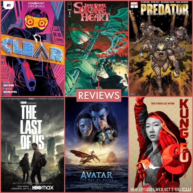 Reviews:\xa0Clear #1, Predator Vol 4 #1, Stone Heart #1, Kung Fu s3 finale, The Last of Us s1 finale, Avatar: The Way of Water