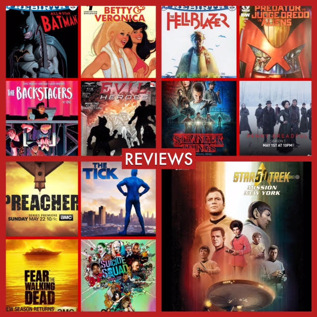Reviews:\xa0All-Star Batman #1, Backstagers #1, Betty and Veronica #1, Evil Heroes #1, The Hellblazer #1, Predator vs Judge Dredd vs Aliens #1. Stranger Things, Penny Dreadful (series finale), Preacher (finale), The Tick (pilot), Fear the Walking Dead. Suicide Squad