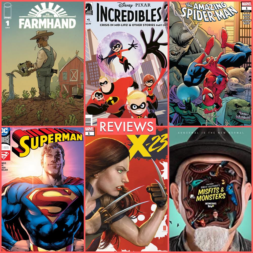 Reviews:\xa0Amazing Spider-Man Vol 5 #1, Farmhand #1, Incredibles 2 #1, Superman Vol 6 #1, X-23 #1,\xa0Bobcat Goldthwait's Misfits & Monsters\xa0