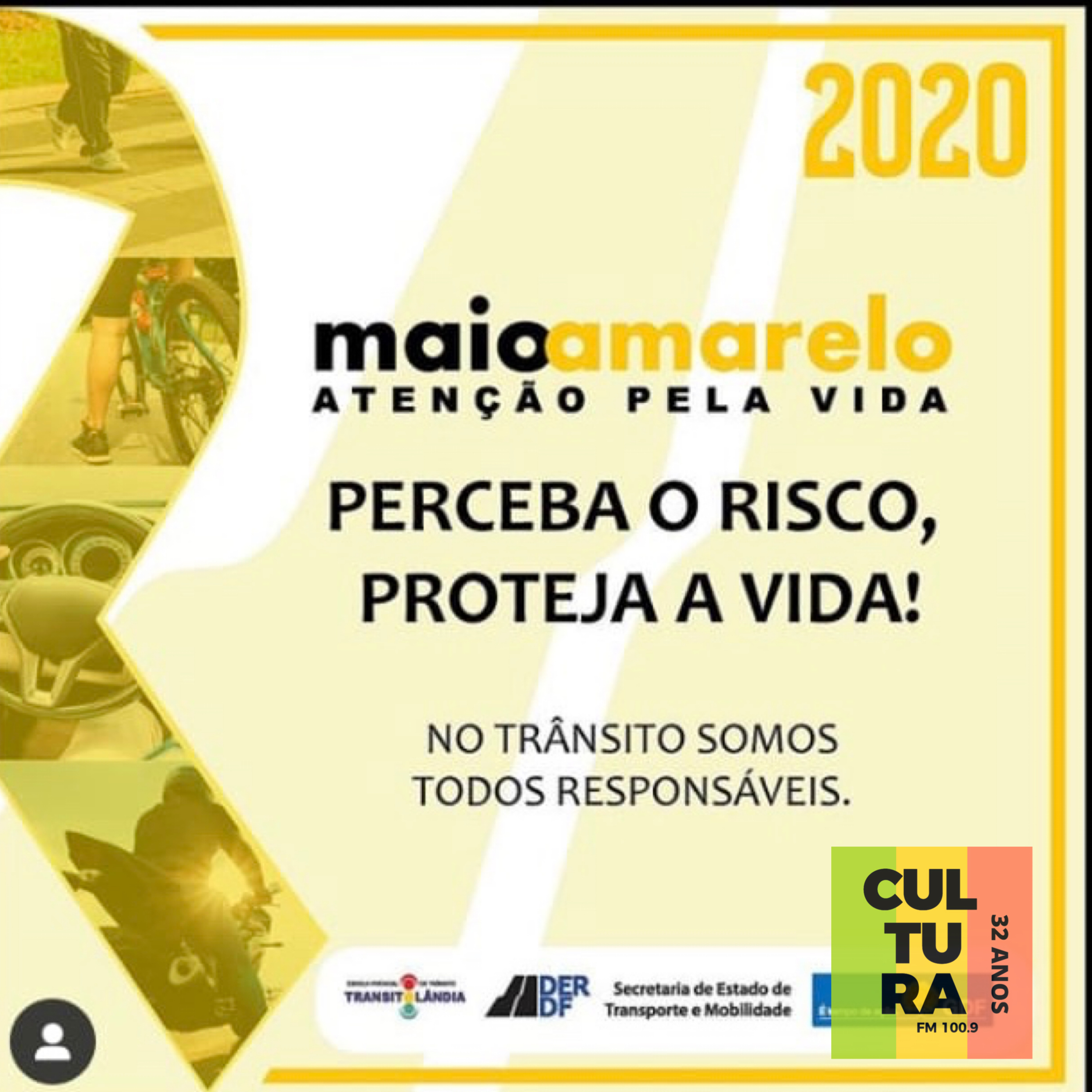 Por causa do isolamento social devido \xe0 pandemia do coronav\xedrus, as a\xe7\xf5es educativas do Departamento de Estradas de Rodagem do DF (DER-DF) referentes ao Maio Amarelo, mobiliza\xe7\xe3o nacional em defesa da vida e por um tr\xe2nsito seguro, est\xe3o sendo divulgadas pelas redes sociais.