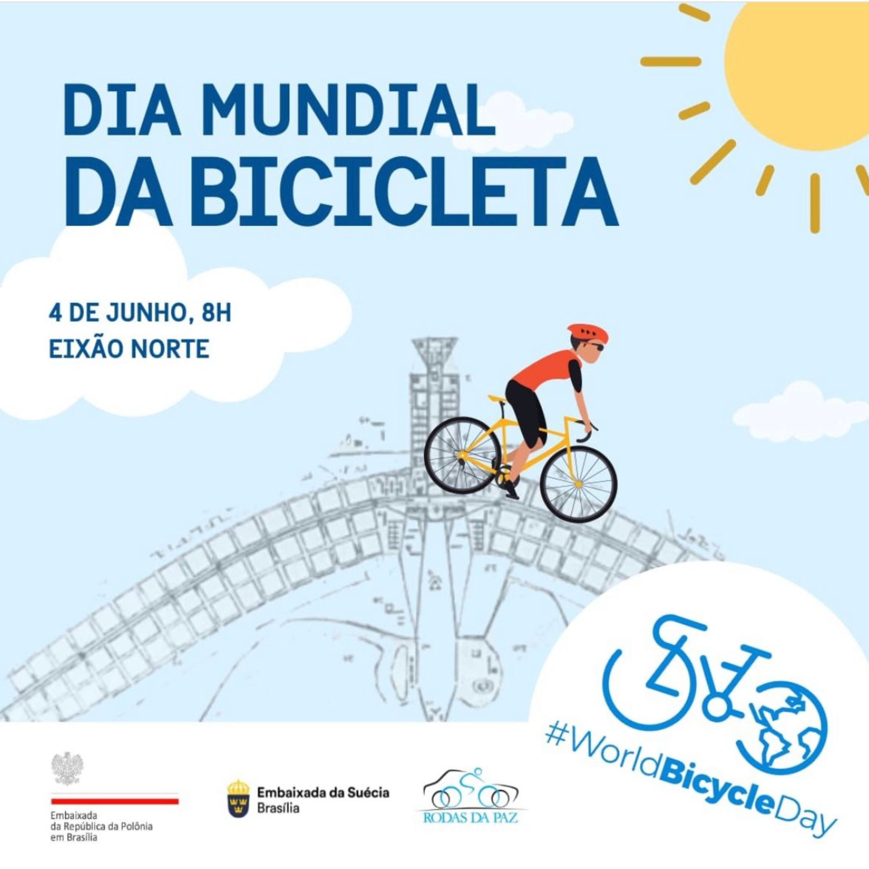 Domingo (4/7), um passeio cicl\xedstico pelo Eix\xe3o Norte vai celebrar o Dia Mundial da Bicicleta. O evento \xe9 organizado pelo movimento Rodas da Paz e as embaixadas da Pol\xf4nia e da Su\xe9cia. Vamos conferir as informa\xe7\xf5es com a jornalista Nita Queiroz.