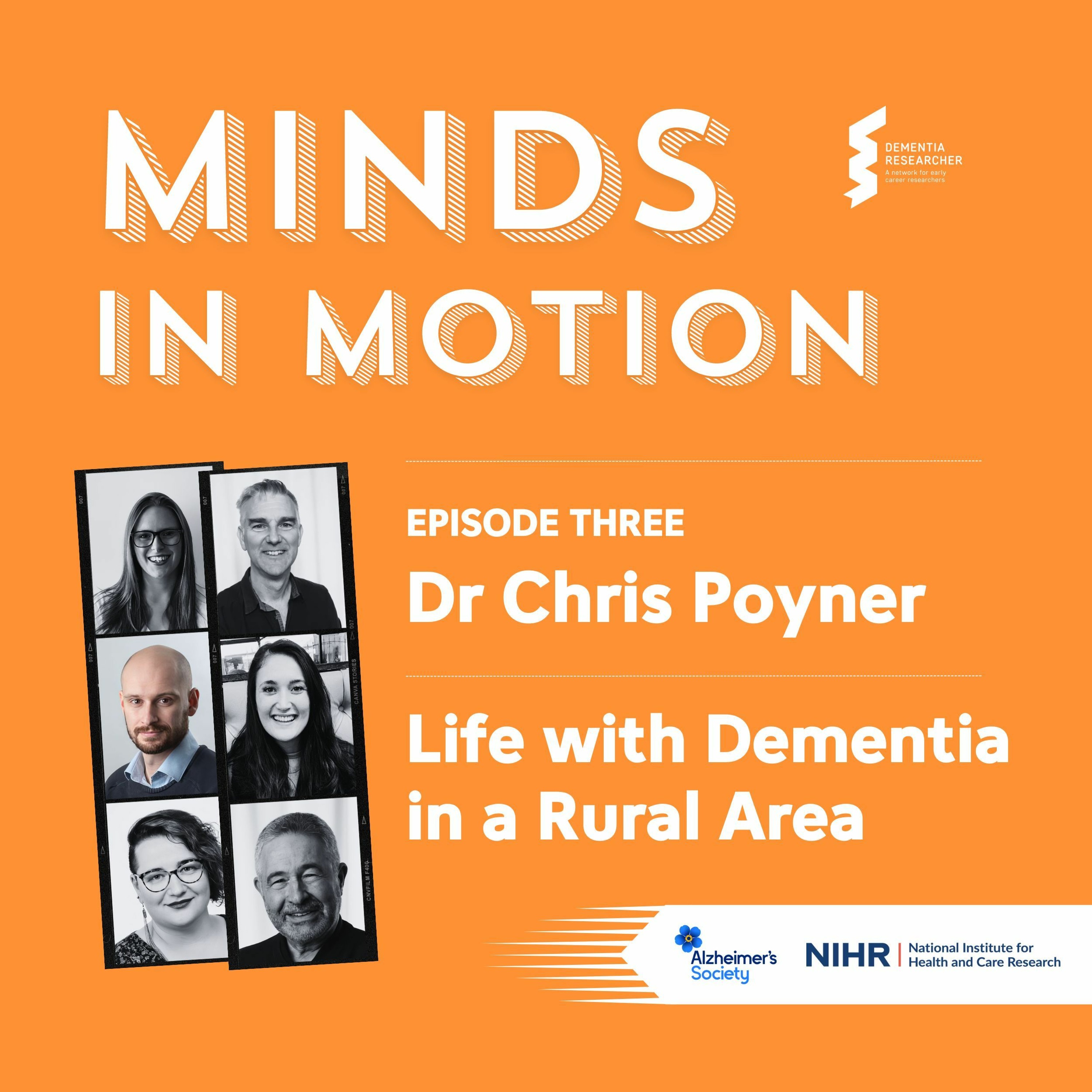 The Minds in Motion Podcast from Dementia Researcher in association with the NIHR Applied Research Collaborations and Alzheimer\u2019s Society, brings together NIHR Dem Comm Research Fellows, to talk about their research and careers.\n\nIn this first series, five of the Dem Comm Fellows each take a turn as co-host and guest. Alongside the researchers we have the incredible Trevor Salomon, Alzheimer\u2019s Society Volunteer & Vice-Chairperson of the European Dementia Carers Working Group as our permanent co-host and anchor.\n--\n\nIn this show Trevor is joined by Dr Rasa Mikelyt\u0117 from University of Kent and NIHR ARC Kent, Surrey & Sussex to interview Dr Chris Poyner.\n\nChris works at the University of Birmingham and NIHR ARC West Midlands. He is leading on a project exploring life in rural areas of the West Midlands with dementia. Exploring how people living in these communities access healthcare and get a diagnosis, and how they are supported following diagnosis, and what could be done better, and how this differs from those living in urban areas.\n\nDem Comm is a 2 year programme funded by the National Institute of Health and Care Research and the Alzheimer's Society. It supports a new generation of dementia research leaders, bringing together researchers from different multidisciplinary backgrounds to encourage cross-cutting and community-orientated dementia research projects that can address key gaps in the evidence around dementia care and support, delivering transformative translational research.\n--\n\nFor information on the Fellowship visit:\nhttps://www.arc-wx.nihr.ac.uk/dem-comm-research-fellows\n\nFor guest biographies, a full transcript and much more visit:\nhttps://www.dementiaresearcher.nihr.ac.uk\n--\n\nLike what you hear? Please review, like, and share our podcast, and don't forget to subscribe to ensure you never miss an episode. If you prefer to watch rather than listen, you\u2019ll find a video version of this podcast on our website & on YouTube: https://youtu.be/ubnMQilPnYE\n--\n\nThis podcast is brought to you in association with Alzheimer's Association, Alzheimer's Research UK, Alzheimer's Society and Race Against Dementia, who we thank for their ongoing support.\n--\n\nFollow us on Social Media:\n\nhttps://www.instagram.com/dementia_researcher/\nhttps://www.facebook.com/Dementia.Researcher/\nhttps://twitter.com/demrescommunity\nhttps://www.bsky.app/profile/dementiaresearcher.bsky.social\nhttps://www.linkedin.com/company/dementia-researcher