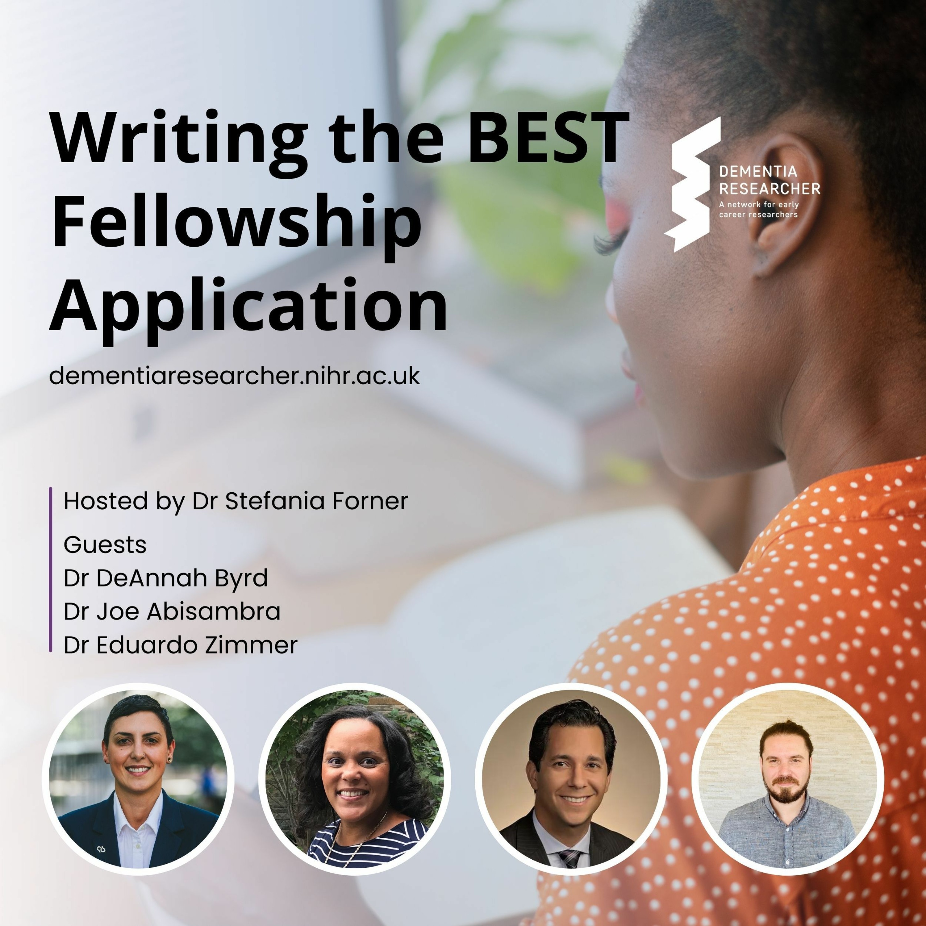 In this podcast, Dr Stefania Forner, Director of Medical & Scientific Relations at Alzheimer's Association guest hosts a discussion with current and past awardees of the Association's Fellowships and international grant programs. They recap on the take-aways from a recent grant writing master glass and explore how grants are evaluated, what makes a successful application.\n\nVisit our YouTube Channel to watch the video version of this podcast - just look for dementia researcher.\n\nMeet our guests:\n\nDr DeAnnah R. Byrd, Assistant Professor at Arizona State University. Studying the effects of chronic conditions & stressors in older Blacks and reducing dementia among minority populations.\n\nDr Joe Abisambra, Associate Professor of Neuroscience and Associate Dean of Diversity and Health Equity at University of Florida. Focussing on tau biology in the context of Alzheimer\u2019s and traumatic brain injury.\n\nDr Eduardo R. Zimmer, Assistant Professor at Universidade Federal do Rio Grande do Sul. Researching Glial Cells, neuroimaging and neurodegeneration at Universidade Federal do Rio Grande do Sul.\n\nThe next Alzheimer\u2019s Association International funding round will open later this summer, keep an eye on the Dementia Researcher and Alzheimer\u2019s Association websites:\n\nhttps://www.dementiaresearcher.nihr.ac.uk/funding-calls\n\nhttps://www.alz.org/research/for_researchers/grants/types-of-grants\n\n--\n\nYou can find out more about our panellists, and their work on our website. There you will also find a full transcript:\n\nhttps://www.dementiaresearcher.nihr.ac.uk\n\n--\n\nLike what you hear? Please review, like, and share our podcast - and don't forget to subscribe to ensure you never miss an episode.\n\nThis podcast is brought to you in association with Alzheimer's Association, Alzheimer's Research UK and Alzheimer's Society, who we thank for their ongoing support.