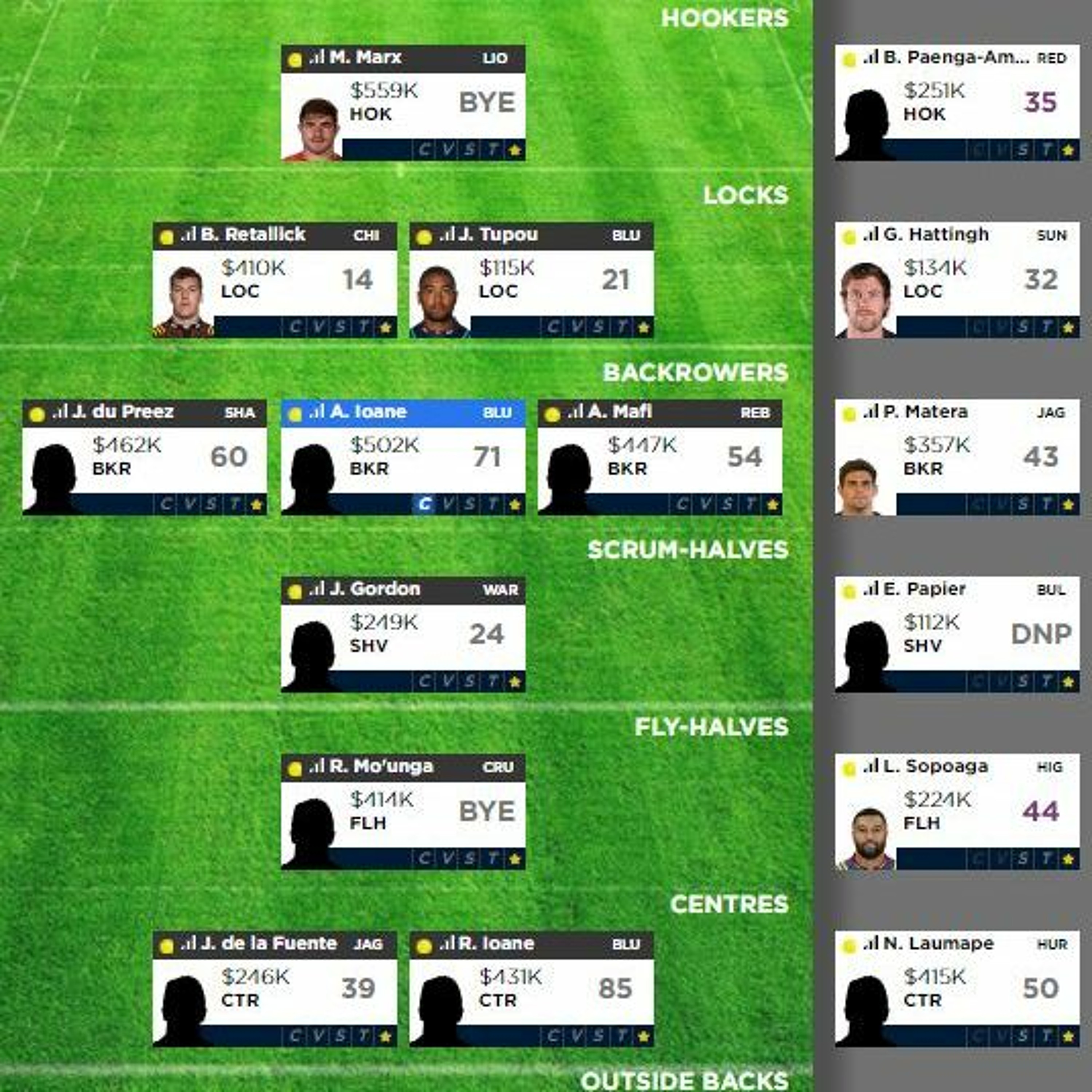 The guys are back for another week of wheeling and dealing on the Fantasy rugby stock market. The Crusaders versus the Sunwolves looms large, as does the possible return of a certain no. 10. Also, Alex hates the new Star Wars. \n\nMusic from bensound.com.