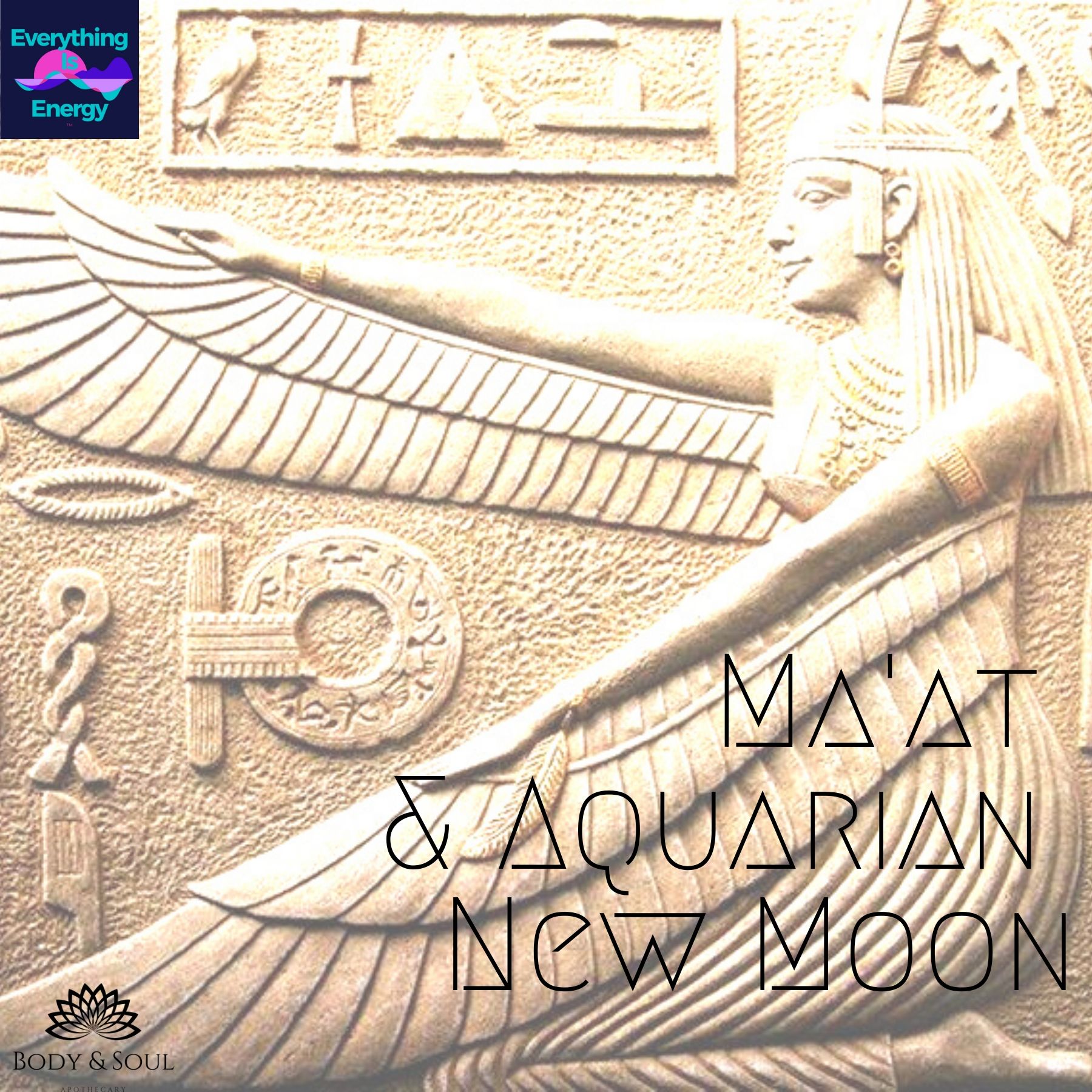 The energies of the Cosmos are shifting; with the new moon in Aquarius on January 24, 2020 we get the first inklings and breezes of future change. We are supported in understanding that we are to embody the change we wish to see. Egyptian Goddess Ma'at brings us energies of truth, balance, and harmony, and together we do a breathing and toning practice that will help us Be light, balanced and expanded. Enjoy! More information here: http://www.bodyandsoulapothecary.com/blog/maat-aquarian-new-moon
