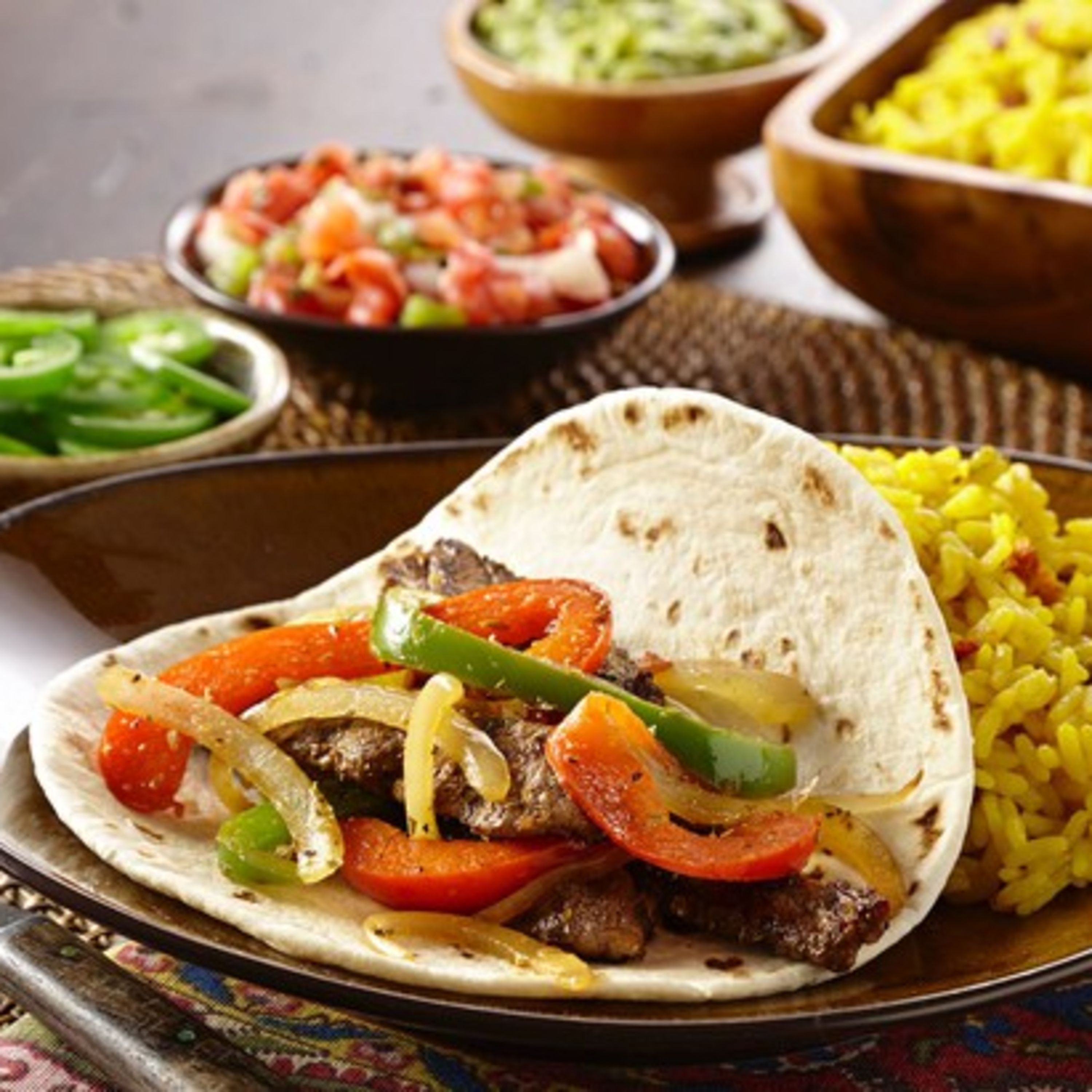 “Mexican Fajita” is a dish with grilled or fried meat that can be served as a taco on a flour or a corn tortilla. If you have people round for dinner and you wanna do something kind of fun and different, you can make Fajitas. And then you can maybe have some theme drinks like margarita or martini, or whatever you want with them to make it a more Mexican-themed night.