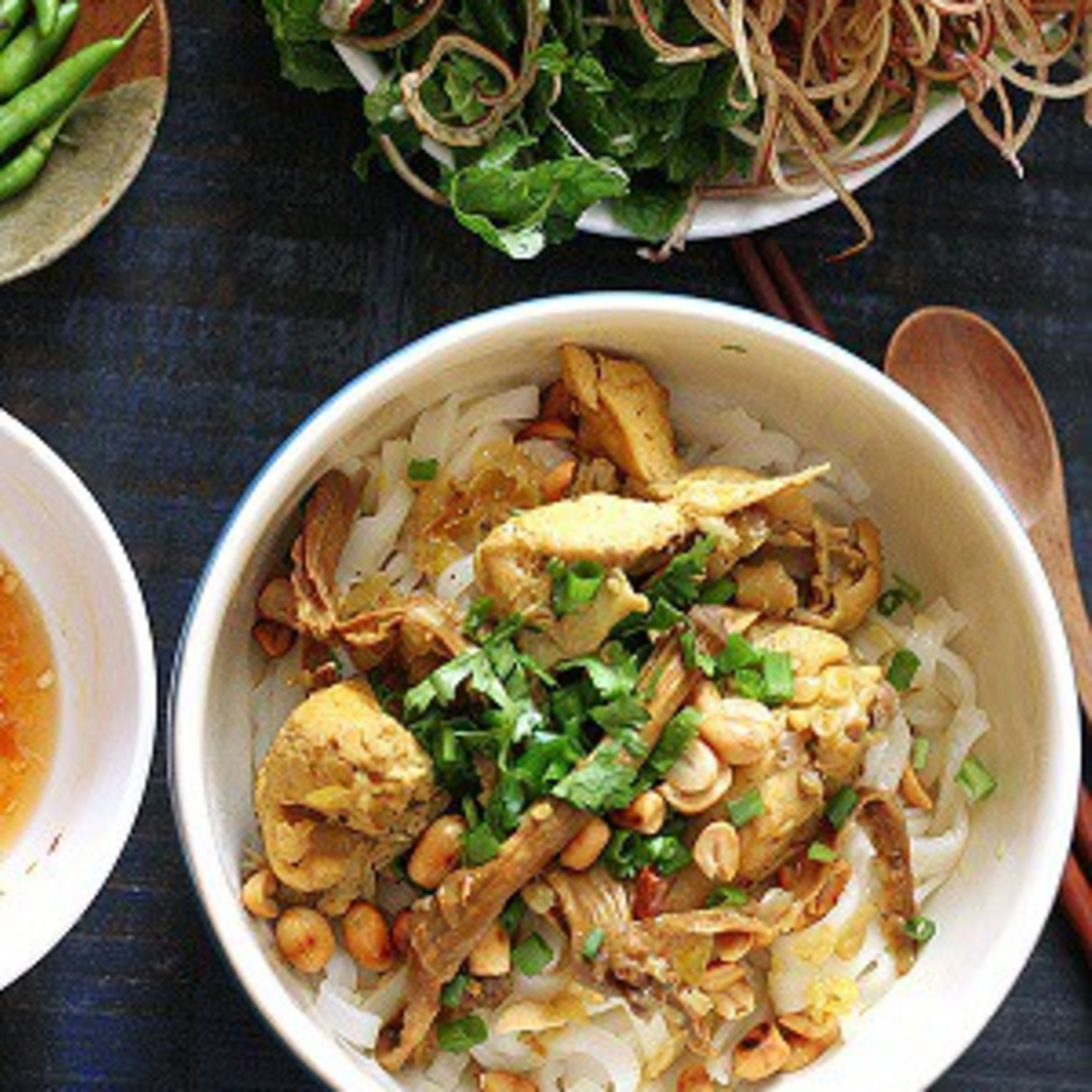 - Quang noodle soup has its name from its place of origin, Quang Nam province in central Vietnam. The major ingredients are rice noodles, meat and herbs. There is a variety of Quang noodle soup made with different kinds of meat such as shrimp, pork, chicken, duck and frog, but the most popular is chicken.