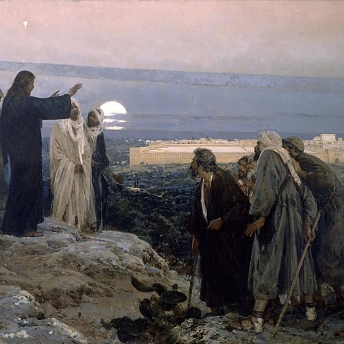 Last week Jesus was in the Temple, sitting opposite the Treasury. Now Jesus is\xa0 opposite the Temple mount, on the Mount of Olives. The prophet Zechariah declared that the last days will begin at the Mount of Olives. Jesus takes his place on the mountain\xa0 long foretold to be where that new day will begin.