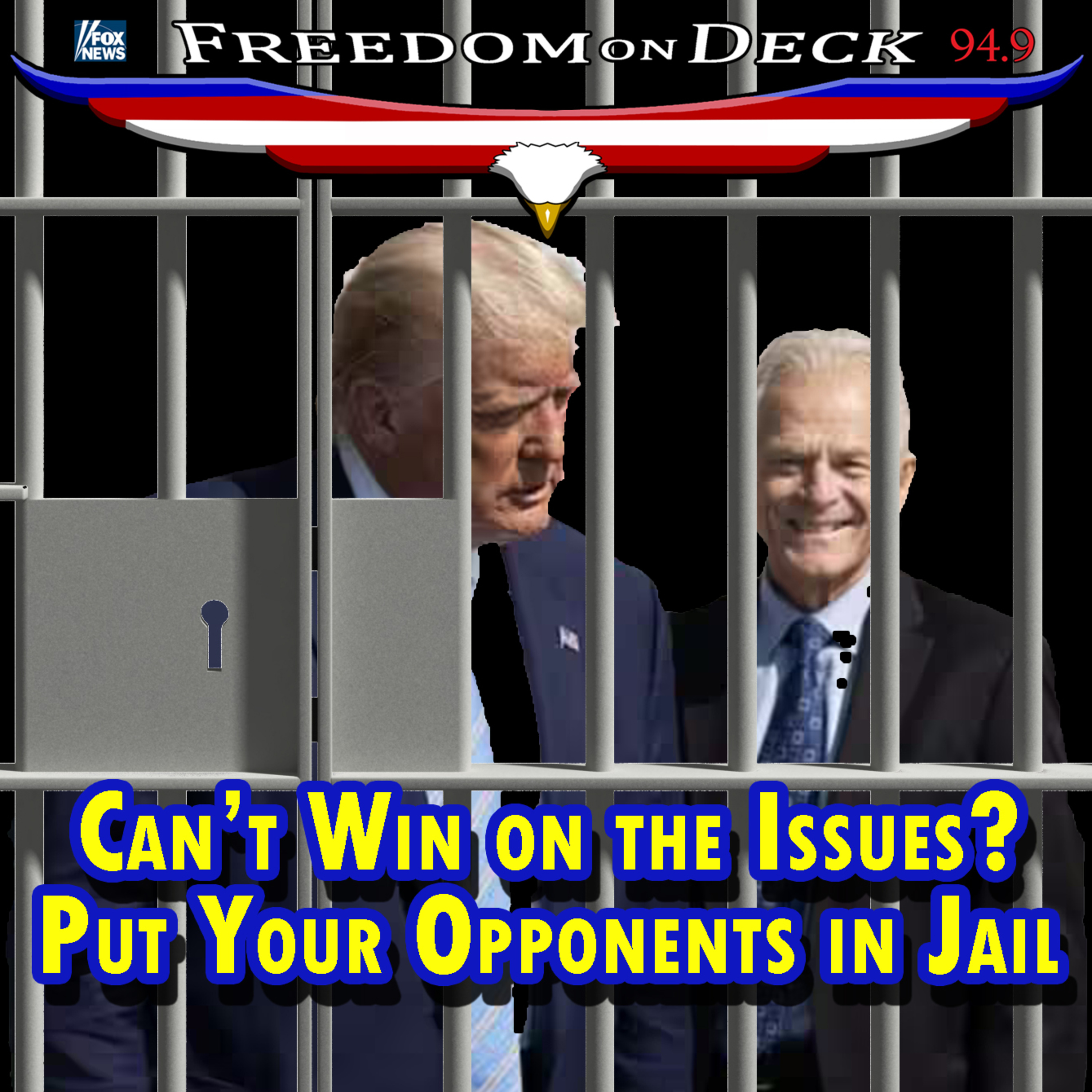 Part 1 of 2: The stolen regime puts the lunatics in charge of the asylums as they try to put the rest of us in jail. Guess what? We\u2019ll STILL win on November 5th. And you can take that to the bank! These and other stories. (6-1-24)\nOur live shows can be heard Saturdays from 1:30 to 3pm EST on local radio FM station Fox News 94.9 WJJF - covering Connecticut, Rode Island and Long Island, NY. Listen live from http://freedomondeck.com/ - and find the archives there and on most video platforms, and on Spotify! \nFacebook: https://www.facebook.com/freedomondeck/.\nEmail Chet and Brian at FreedomOnDeck@gmail.com\nEmail CV at CVBerton@yahoo.com\nAlpha Eye \u2013 novel by CV Berton available on Amazon: \nhttp://bit.ly/AlphaEye