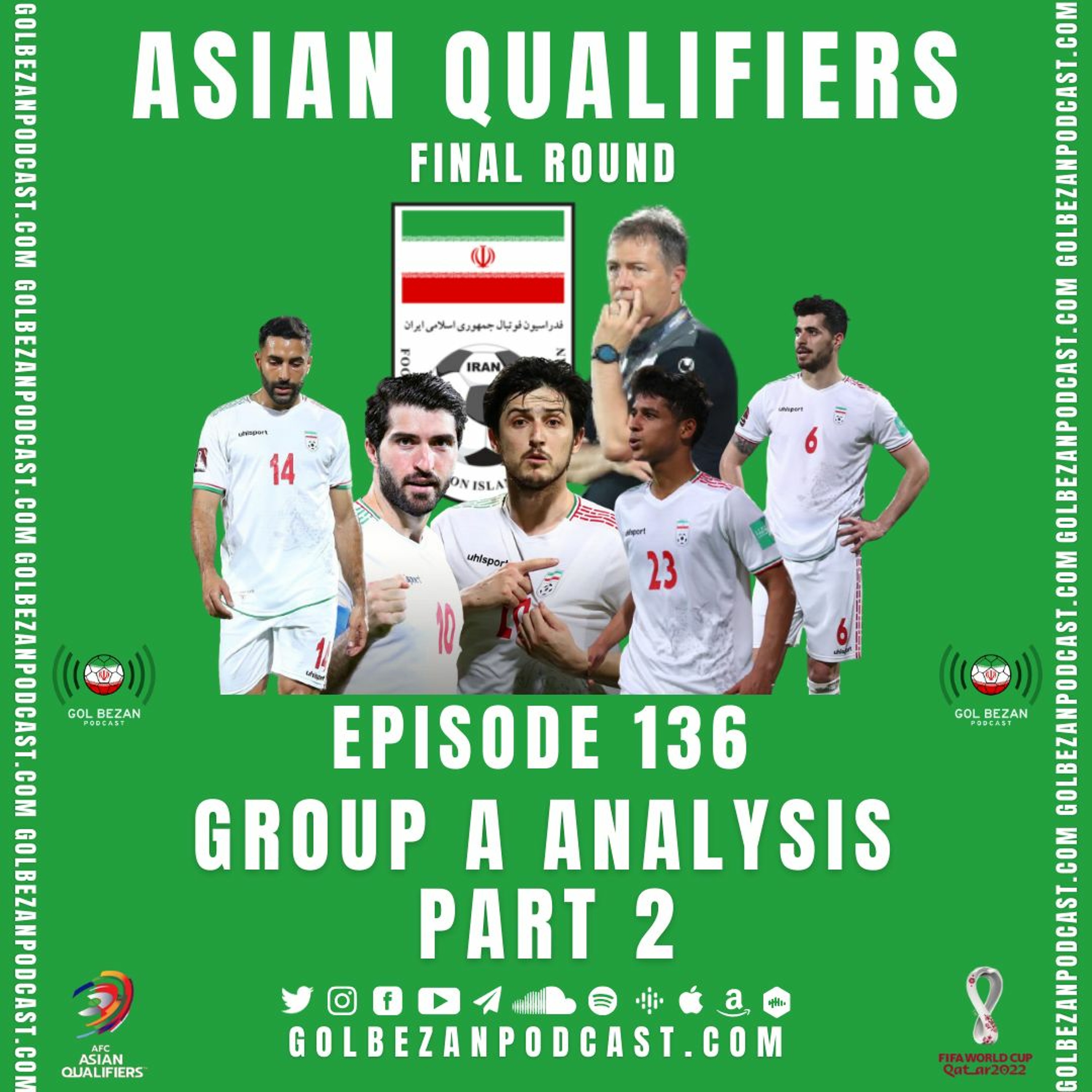 In Part 2\xa0of this two part episode, host Arya Allahverdi is joined by\xa0panelists Pezhman Pars & Sahand Salari to discuss: Iran's chances in the final round of World Cup 2022 Qualification;\xa0Dragan Sko\u010di\u0107 remaining\xa0as Team Melli head coach and more. We also hear from\xa0https://radiooffside.com's Sina and\xa0https://persianfootball.com's Dara Zarandi who give\xa0their reactions and thoughts on Group A of the Asian Qualifiers\xa0and all the news surrounding the Iranian National Team.\n\nChapters:\nIntro \u2013 0:00\nReaction to Group A Draw - 2:05\nSouth Korea Again? - 6:42\nAre UAE a potential banana skin? - 11:00\nSyria a surprise? - 14:07\nSina | Radio Offside - 16:47\nDragan Sko\u010di\u0107 Stays - 26:23\nDara Zarandi | Persian Football - 34:31\nFan Questions - 40:41\nOutro - 49:58\n\nFollow us on social media\xa0@GolBezan, leave a like/review & subscribe on the platform you listen on - YouTube, Spotify, iTunes, Google Podcasts, SoundCloud, Amazon, Castbox.\n\nHost:\xa0Arya Allahverdi\nPanel:\xa0Pezhman Pars & Sahand Salari\nGuests:\xa0Sina\xa0&\xa0Dara Zarandi\nEditor:\xa0Samson Tamijani\nGraphic: Mahdi Javanbakhsh\nIntro Music: CASPIAN by ASADI\ninstagram.com/dannyasadi\nsmarturl.it/CASPIAN\nOutro Music: K!DMO\ninstagram.com/kidmo.forreal\n\nArya - twitter.com/arya_allahverdi\nPezhman - twitter.com/Iranskfotboll\nSahand - twitter.com/salari_sahand\nSina - twitter.com/RadioOffside\nDara - twitter.com/DaraZarandi\nSamson - twitter.com/713Samson\nMahdi - twitter.com/mativsh\n\ntwitter.com/GolBezan\u200b\ntwitter.com/GolBezanFarsi\u200b\ninstagram.com/GolBezan\nfacebook.com/GolBezanPodcast\u200b\n\n\U0001f310 https://golbezanpodcast.com\u200b\n\U0001f517 linktr.ee/GolBezan\u200b\n\U0001f4e7 mail@golbezanpodcast.com