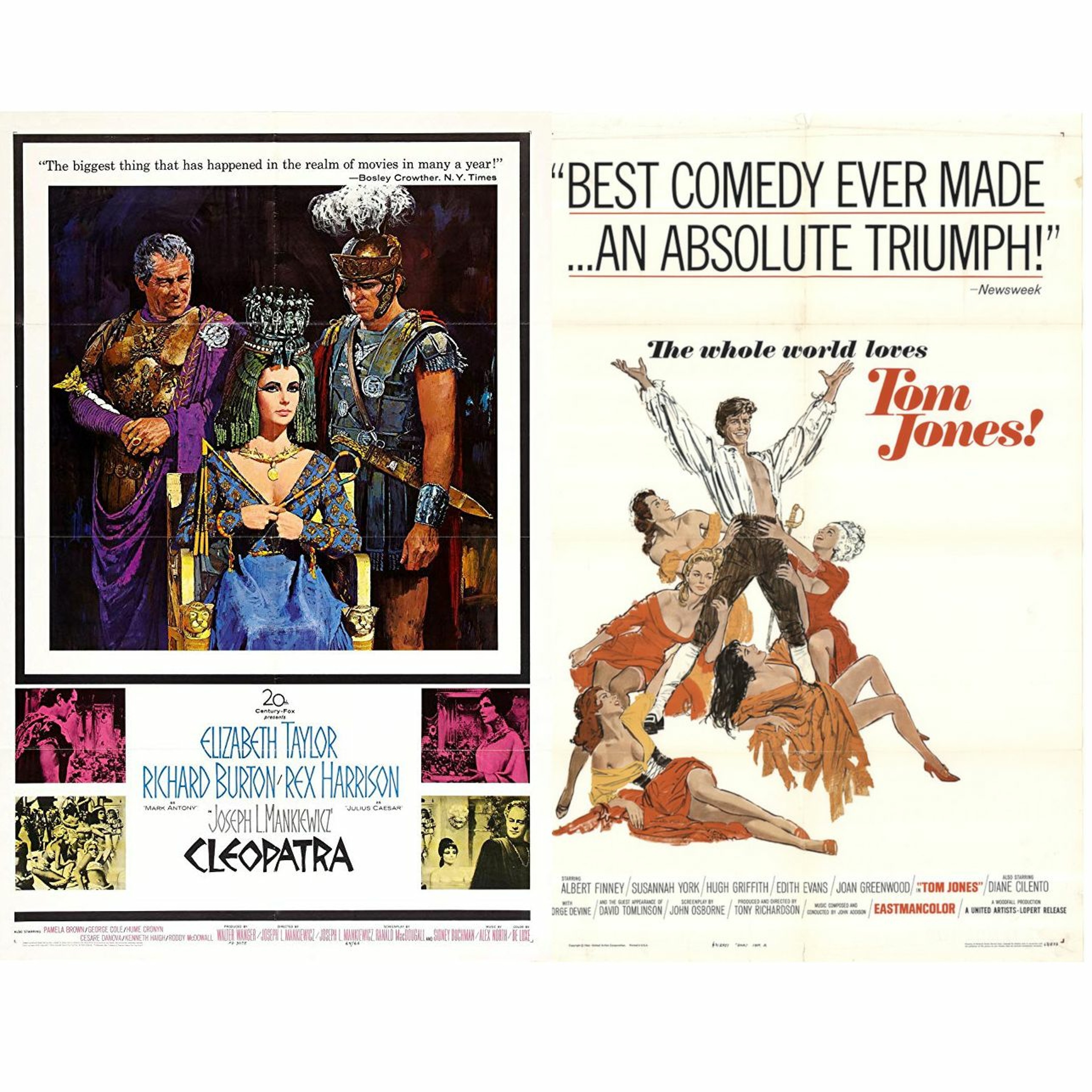 Happy Fourth of July Weekend! This week's battle is between the top grossing film of 1963, Cleopatra, starring Liz Taylor and Richard Burton, versus the Oscar winning best picture, Tom Jones. Both are unique films in their own right, from an epic expensive blockbuster to a quirky British period-piece romantic comedy.