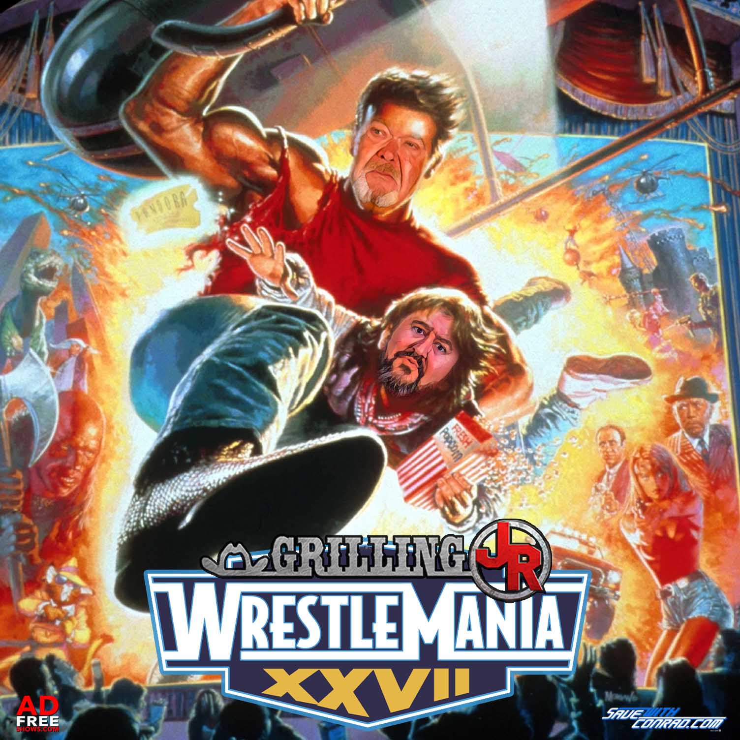 On this episode of Grilling JR, listen as JR and Conrad revisit WrestleMania 27, which took place on April 3, 2011 at the Georgia Dome in Atlanta, GA. We'd see the return of The Rock after a 7-year absence as WM special guest host. It was also the only WrestleMania in history where no titles changed hands. In it, we'd see a main event featuring The Miz vs. John Cena for the WWE Championship. Plus, Undertaker vs. HHH in a No Holds Barred match, Randy Orton vs. CM Punk, and believe it or not, we'd even see Michael Cole and Snooki in action. That and so much more as we look back on WrestleMania 27!\nDo you own or rent your home? Sure you do! And I bet it can be hard work. You know what\u2019s easy? Bundling policies with GEICO. GEICO makes it EASY to bundle your homeowners or renters insurance, along with your auto policy. Visit GEICO.com today.\nNutrisystem is simple and convenient with delicious meals delivered right to your front door with little no meal prep required!\xa0Just go to Nutrisystem.com/JR to get 50% off your order!\nGrammy nominated artist Wale has announced an official apparel partnership with the WWE along with Footaction..The first \u201cWALEMANIA\u201d capsule designed with Wale will launch during WrestleMania week and feature some of the greatest Black champions of all time. WaleMania launches on April 7th. Follow @footaction for more details.\xa0\nVisit BlueChew.com and get your first order free when you use promo code JR. Just pay $5 shipping.\nIf you've experienced a loss of motivation, energy or sex drive, or if you're noticing that you're a little softer around the middle than you used to be, it could be that your testosterone levels have dropped. Don't settle for average, man up at LegacySupps.com and use code JR for an additional 10% off your entire order.\xa0\nGifts that say I love you every single day, backed with decades of experience in the comfort of your own home. It\u2019s EASY! Just go to www.IHATESTEVENSINGER.com, fast, free and safe shipping.\nIf the signals are on, the train is on its way. And you...just need to remember one thing...Stop. Trains can\u2019t.\nSave yourself some money, get a better interest rate, lower monthly payments and even skip your next two payments at www.SaveWithConrad.com\nWarmer weather is just around the corner, and you need to make sure you're ready for grilling season. Head over to www.JRsBBQ.com and grab yourself some great bbq sauce and order "Under The Black Har" JR's latest book too!\nDo you want to style and profile like good ol' JR? Well, stop by www.jimrossshirts.com and check out all our tees. We have new designs going up almost every week!\nPlus, JR's jumped into the Patreon game with a new and unique way to list to the podcast...ADFREESHOWS.com! Not only will you get Grilling JR ad free and early you'll also get all four of Conrad's other podcasts and a whole lot more! Head over and check out the available tiers and all they offer over at ADFREESHOWS.com\nDo you have a product or business you want JR & Conrad to talk about on the show? Let us know about it and fill out a FREE quick form over at www.AdvertiseWithConrad.com\nLearn more about your ad choices. Visit podcastchoices.com/adchoices