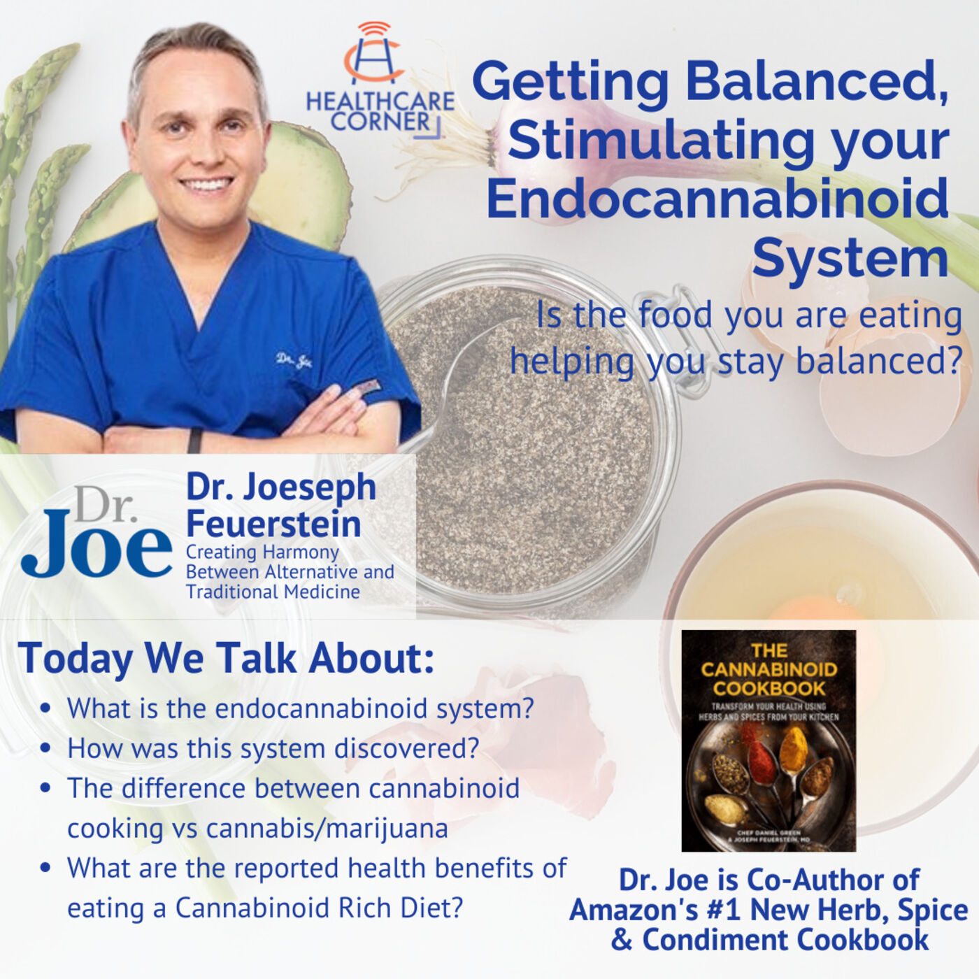 Today Dr. Joseph Feuerstein, M.D., introduces a new topic to the Healthcare Corner. What is it? It is the endocannabinoid system and is quite complex and new to modern-day medicine. Join the conversation to learn about the purpose of this system, which is to get your body back into balance through a physiological point of view. It affects body needs, stress, sleep, metabolism, fertility, cardiovascular health, and much more. Tune in today to learn how you can improve your endocannabinoid system through food intake and lifestyle.\xa0