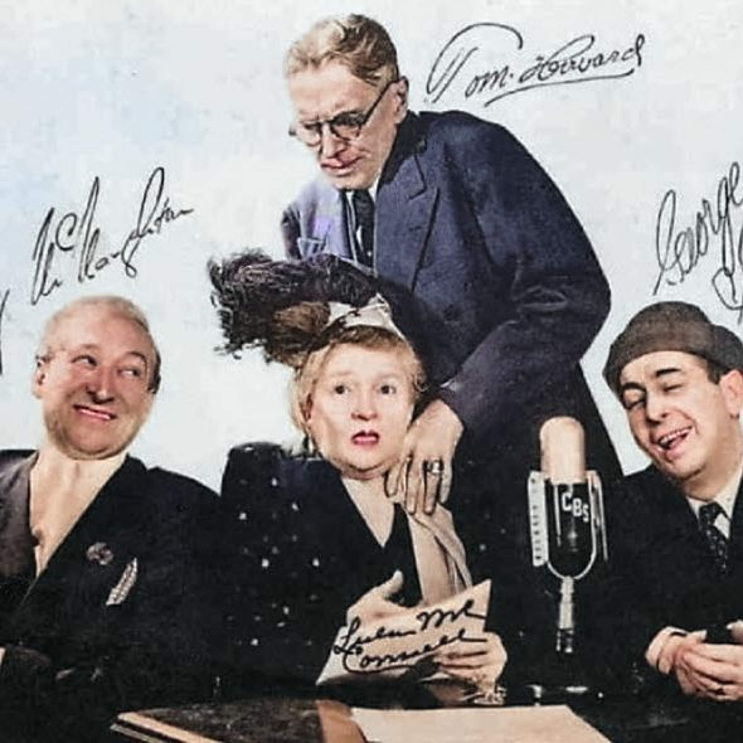 Courtesy of the Armed Forces Radio Service... an episode of that daffy board of in-experts - Harry McNaughton, Lulu McConnell, and George Shelton (Photo front left to right). Their equally bright quizmaster was Tom Howard (Photo - standing). All of these veteran performers originally made their living in vaudeville... and brought their same jokes to radio and managed to conjure up some solid belly laughs during every show. CBS Friday night at 10 PM). The show ran for 9 years.. 1942 - 1951 and bounced from the Mutual to CBS, and finally to NBC typically as a summer replacement show. Sponsors were Phillip Morris Cigarettes, Chrysler and DeSoto Automobiles. This series lives in the "Game Shows" Playlist