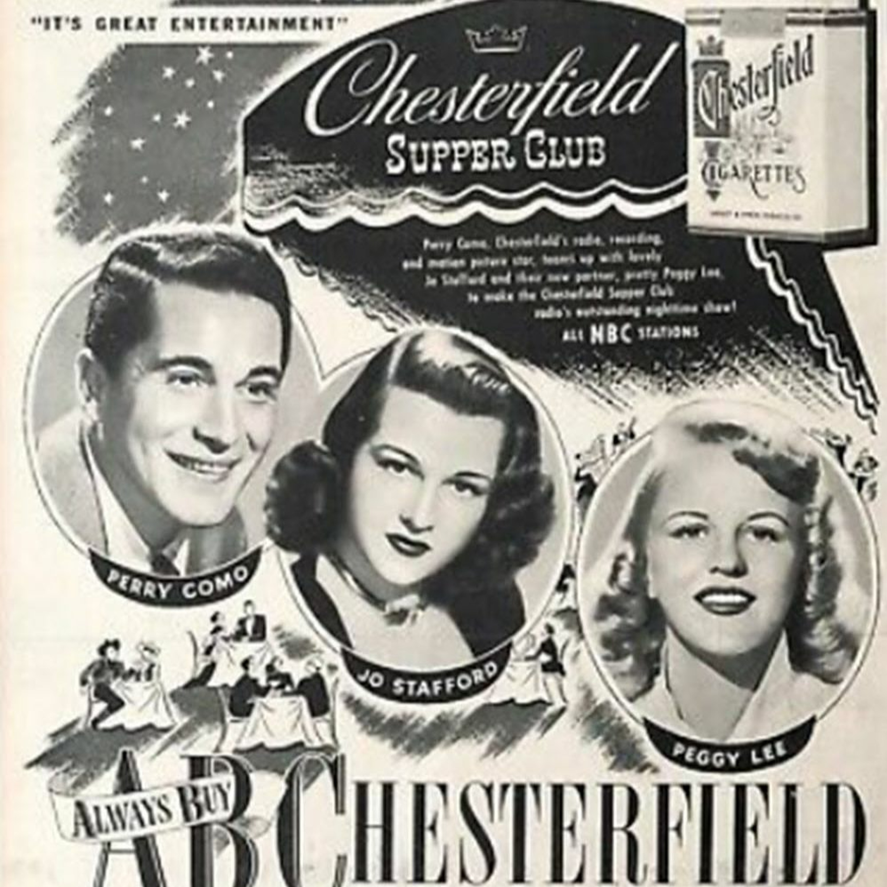 This NBC radio program began on Dec 11, 1944 as a 15 min show airing at 7 pm weeknights. Sponsored by Chesterfield cigarettes, the show featured live musical performances and comedic skits. By September of 1949 the show was extended to a half hour. Regular co-hosts were Jo Stafford and Peggy Lee, but on this show a special guest, Dorothy Lamour is onboard. The Fontaine Sisters were regulars along with the Mitchell Ayers Orchestra and announcer Martin Block. Songs heard on this show are "Dear Hearts and Gentle People," " What Is This Thing Called Love?" " If I knew You Were Coming..." "Bibbidi Bobbidi Boo" "You're Wonderful" The show was also telecast no NBC TV from 1948-50. Perry Como recorded exclusively for RCA Victor for 44 years after signing with them in 1943. He recorded 81 albums, 484 singles and made 2565 appearances on television, videos, films in a career that lasted over 50 years. He died on May 12, 2001 at the age of 88. This track will be in the Playlist "Variety / Comedy / Musicals"