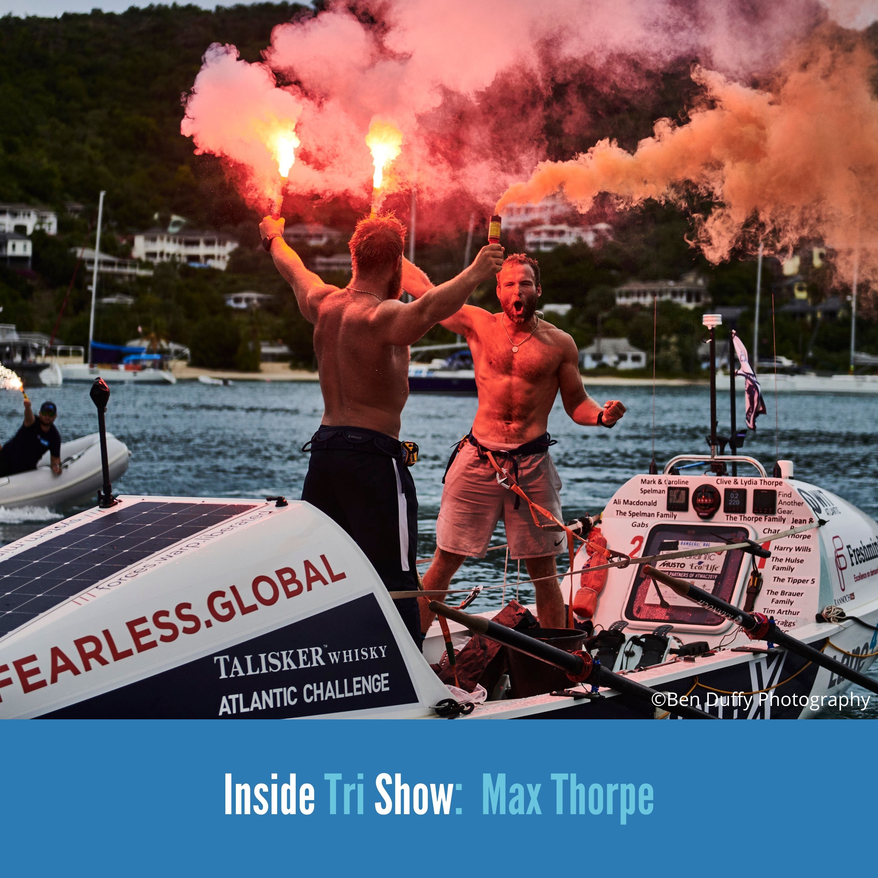 "Sitting on a swing on the edge of a tanker in the middle of the Atlantic isn't exactly what you'd call safe." In this episode you're going to hear some incredible story telling from ocean rower Max Thorpe.\nMax overcame a near death experience while attempting to row across the Atlantic. His initial attempt ended in failure and he had to be rescued by an oil tanker. But Max bounced back and three years later, broke the World Record for the fastest row across the Atlantic in 2020.\nYou'll hear:\n08:34 Max's limited experience in a boat: 'I'd never rowed before and I had no ocean faring experience'\n17:14 The training required to row across the Atlantic\n42:50 The dramatic rescue by a 110,000 tonne oil tanker\n59:36 Returning to the race and being successful in 2020\n1:05:36 His partnership with Resilient Nutrition and developing Long Range Fuel during the Atlantic row\n1:08:12 Doing a DIY Ironman after his goal of IM Nice was cancelled\nFind out more about this week's guest\nMax Thorpe\xa0Instagram\nMax Thorpe\xa0Twitter\nLike what you heard?\nLet me know! Connect with Inside Tri Show across Social Media, just search Inside Tri Show or click on the icons below\nShow sponsors\nLONG RANGE FUEL\nLong Range Fuel\xa0is a phenomenally tasty nut butter, enhanced by cutting edge science, to boost your stamina, keep you calm and alert and bolster your resilience. It helped fuel Max Thorpe and Dave Spelman to their World Record. Get\xa010% off\xa0by using the code\xa0insidetri10\xa0or go direct\xa0via this link.\nLearn more about your ad choices. Visit podcastchoices.com/adchoices