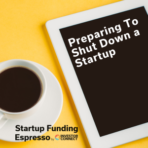 Preparing To Shut Down a Startup Hello, this is Hall T. Martin with the Startup Funding Espresso -- your daily shot of startup funding and investing. Sometimes the startup you launched does not make it and must be shut down. In shutting down a startup take the following steps: Give an early warning signal to the employees. Let them know what is happening such as we\u2019re raising additional funding. Give them a few month's notice but make clear if things don\u2019t turn around a shutdown may ensue. When it becomes clear a shutdown is going to happen, then set a closing date. Give notice to the employees about the shutdown date. The more notice you give employees the better. Inform the investors of the shutdown. Own the failure with investors and articulate the mistakes you made. If you have any customers, notify them of the shutdown.\xa0\xa0 If you have meaningful revenue then you should consider selling the company.\xa0 If you can\u2019t sell the company then you should transition the customers to other solutions. Finally, close all contractors, bank accounts, and credit cards, and shut down the legal entity. File your taxes and leave nothing left standing as it could come back to bite you. It\u2019s tough shutting down a business but there\u2019s a proper way to do it. \xa0 Thank you for joining us for the Startup Funding Espresso where we help startups and investors connect for funding. Let\u2019s go startup something today. _______________________________________________________ For more episodes from Investor Connect, please visit the site at: \xa0 Check out our other podcasts here: \xa0 For Investors check out: \xa0 For Startups check out: \xa0 For eGuides check out: \xa0 For upcoming Events, check out \xa0\xa0 For Feedback please contact info@tencapital.group\xa0\xa0\xa0 Please , share, and leave a review. Music courtesy of .