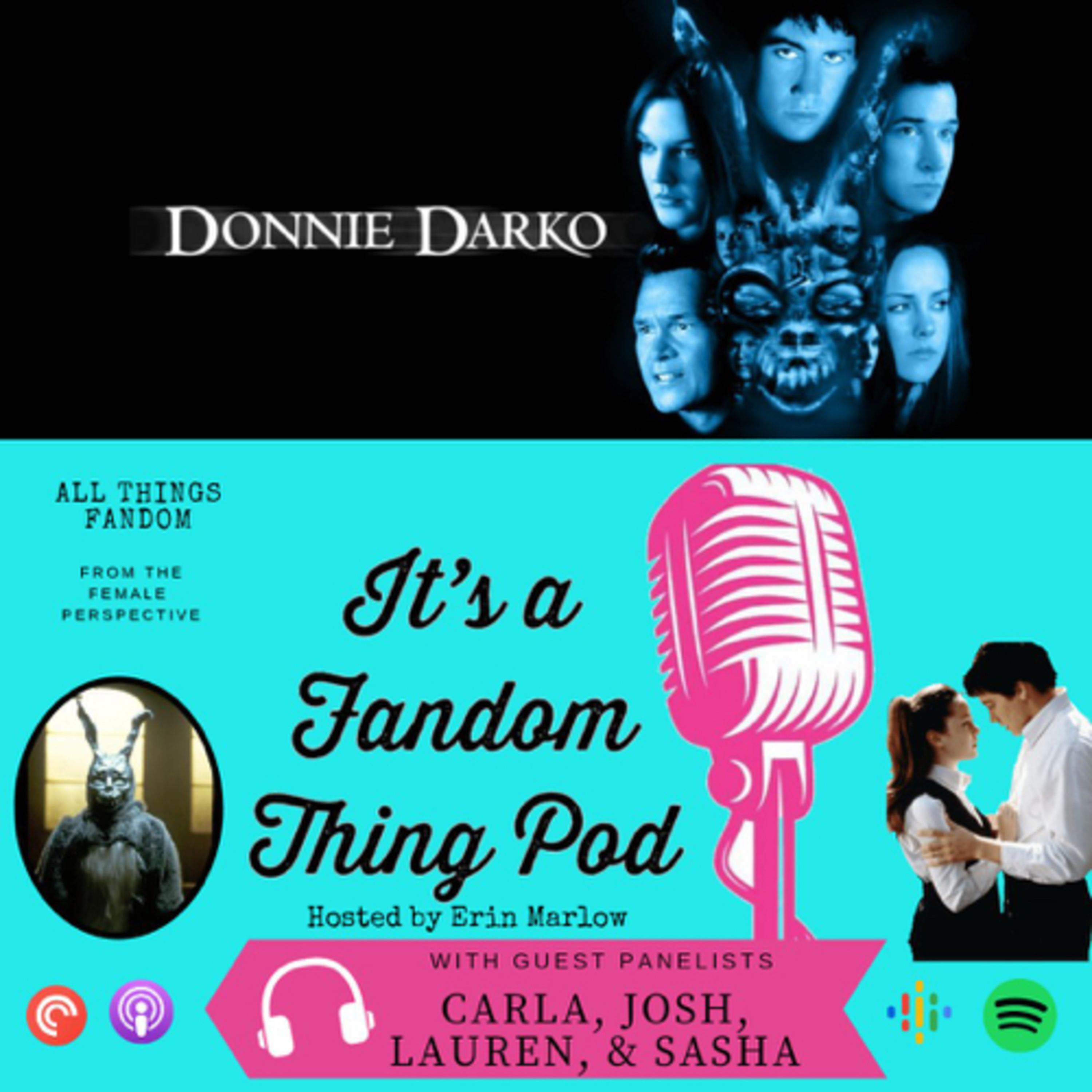 In this episode, we discuss the brilliant film, Donnie Darko, which turns twenty this year. Carla, Sasha, and guest panellists Josh Ruben and Lauren Sick, join Erin to dive deep into this masterpiece. We talk about the music, the characters, the ending, what the film says about mental illness, what the movie means to us, and so, so much more.\xa0\nConnect with Josh Ruben at: joshsmindhouse.com\nConnect with Lauren Sick at: https://laurensick.com/\nCheck out Sasha's husband's upcoming game at: http://spyglassgames.com/\nYou can find Carla's photography at: https://www.carlatemis.com/\nYou can follow us on Facebook: facebook.com/itsafandomthingpod\nTwitter: @fandomthingpod\nInstagram: @itsafandomthingpod\nCover art by Carla Temis and Logo by Brooke Belli\nLearn more about your ad choices. Visit megaphone.fm/adchoices