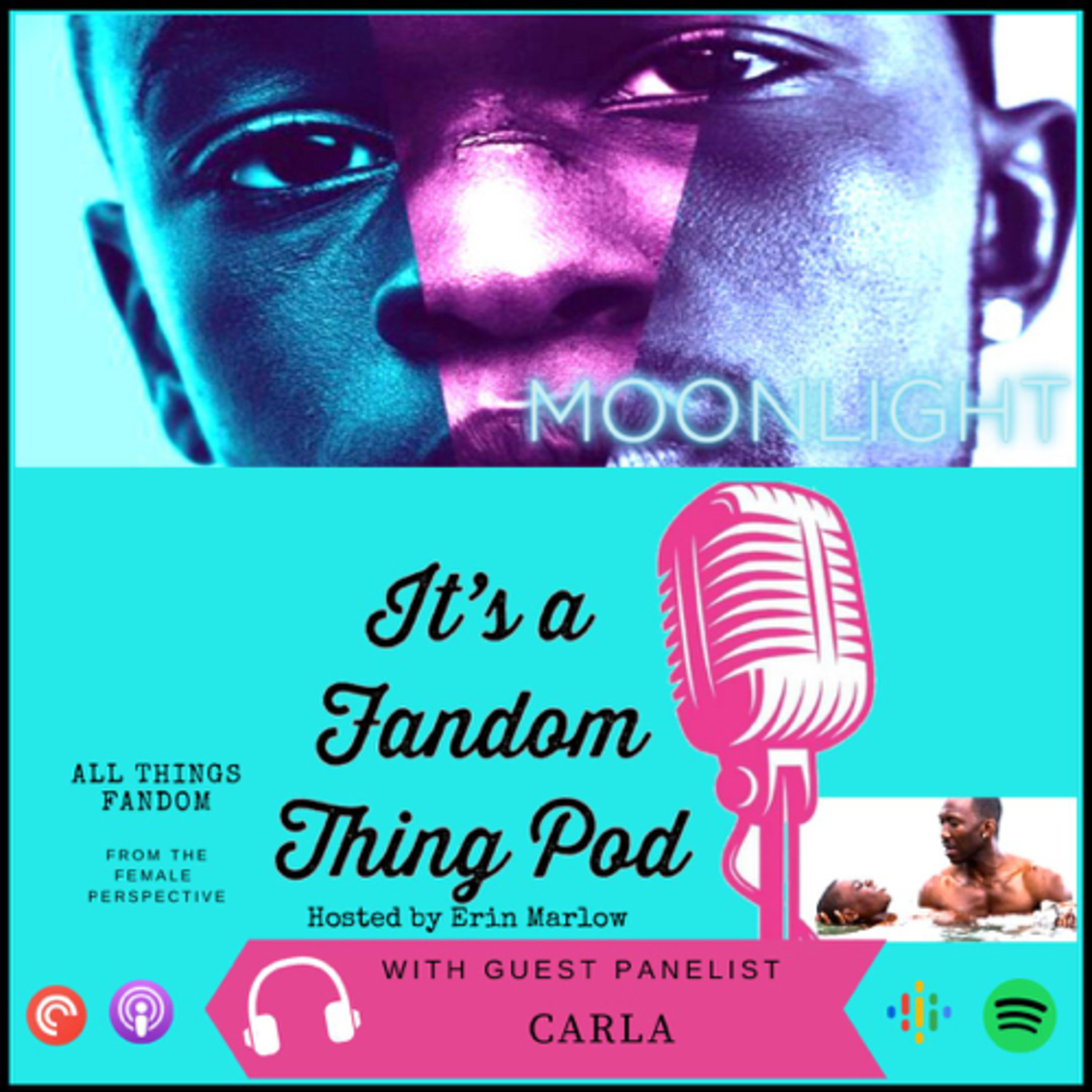 We kick off Pride Month with a discussion about the film, Moonlight. Carla Temis joins Erin for this great discussion. We talk about the different chapters, the importance of representation, The significance of the Oscar win, and go on some fun tangents. It's a heavy one, but important.\nTrigger Warnings: Mentions of homophobia, child abuse/neglect, and drug use.\nWant to hear the full unedited version? Head on over to our YouTube page for the live stream: https://youtu.be/xciZMI670Rw\nBe sure to vote for us for your favorite film/TV podcast here: https://quitethethingmedia.com/awards-voting/\nYou can find Carla's photography at: https://www.carlatemis.com/\nYou can follow us on Facebook: facebook.com/itsafandomthingpod\nTwitter: @fandomthingpod\nInstagram: @itsafandomthingpod\nCover art by Carla Temis and Logo by Brooke Belli\nLearn more about your ad choices. Visit megaphone.fm/adchoices