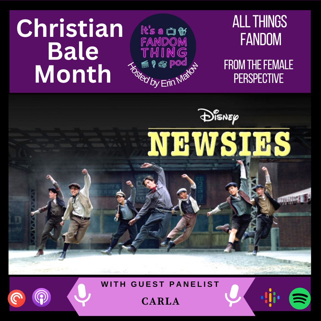 We continue our Christian F*^%ing Bale Month with a look at Newsies! Carla from Bed, Wed, or Behead podcast joins Erin to discuss their overall thoughts on Bale's performance, the singing, and whether or not that got in the way of the film's overall message, and go on some fun little tangents about their love for Christian Bale. Plus, "Bale" makes a very special appearance. For the full unedited version, and to see "Christian Bale", head on over to our YouTube channel: https://www.youtube.com/watch?v=VTjN1rPF1Pk&t=930s!\nBe sure to support us on Patreon: https://www.patreon.com/itsafandomthingpod.\nYou can follow us on Facebook: facebook.com/itsafandomthingpod\nTwitter: @fandomthingpod\nInstagram: @itsafandomthingpod\nDiscord: https://discord.com/channels/1042986989349257216/1042987584151879762\nCover art by Carla Temis. Podcast logo by Erin Amos.\nLearn more about your ad choices. Visit megaphone.fm/adchoices