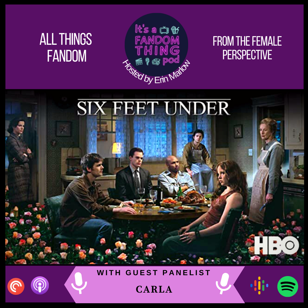 In this episode, we take a deep dive into the HBO show, Six Feet Under! Erin is joined by the co-host of Bed, Wed, or Behead podcast, Carla, to discuss all things Six Feet Under. They talk about the show's commentary on how we handle death in the United States, take a look at all the characters, discuss the episode That's My Dog, talk about some of the opening deaths, and delve into the grand finale. TW for discussions of Death, murder, mental health, sexual assault, incest, forced drug use, gun violence, and mental illness.\nPlay the audience version of "Six Degrees of Finn Wittrock" for a chance to win some merch: https://itsafandomthingpod.com/finn/\nFor more information about our upcoming Horror Trivia Event, or to sign-up to be a contestant, click here: https://itsafandomthingpod.com/horrortrivia/\nBe sure to support us on Patreon: https://www.patreon.com/itsafandomthingpod.\nYou can follow us on Facebook: facebook.com/itsafandomthingpod\nTwitter: @fandomthingpod\nInstagram: @itsafandomthingpod\nCover art by Carla Temis.\nLearn more about your ad choices. Visit megaphone.fm/adchoices