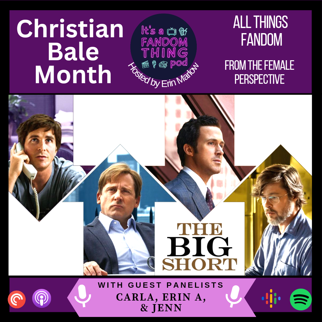 We continue our Christian Bale Month celebration with a look at Adam McKay's The Big Short! Erin is joined by Carla from Bed, Wed, or Behead, Erin A., and Jenn from My Streaming Bubble! They discuss Bale's performance, McKay's unique direction, our thoughts on the celebrity cameos and breaking the fourth wall, discuss why this country never seems to learn from its mistakes, and much more!\nPlease consider donating or sharing Mark Patton's GoFundMe: https://gofund.me/8eec009d\nVote now in our first annual Fandom Choice Awards! https://forms.gle/pQaCZqeaBVzL7LuNA\nBe sure to support us on Patreon: https://www.patreon.com/itsafandomthingpod.\nYou can follow us on Facebook: facebook.com/itsafandomthingpod\nTwitter: @fandomthingpod\nInstagram: @itsafandomthingpod\nDiscord: Discord: https://discord.com/channels/1042986989349257216/1042987584151879762\nCover art by Carla Temis. Podcast logo by Erin Amos.\nLearn more about your ad choices. Visit megaphone.fm/adchoices