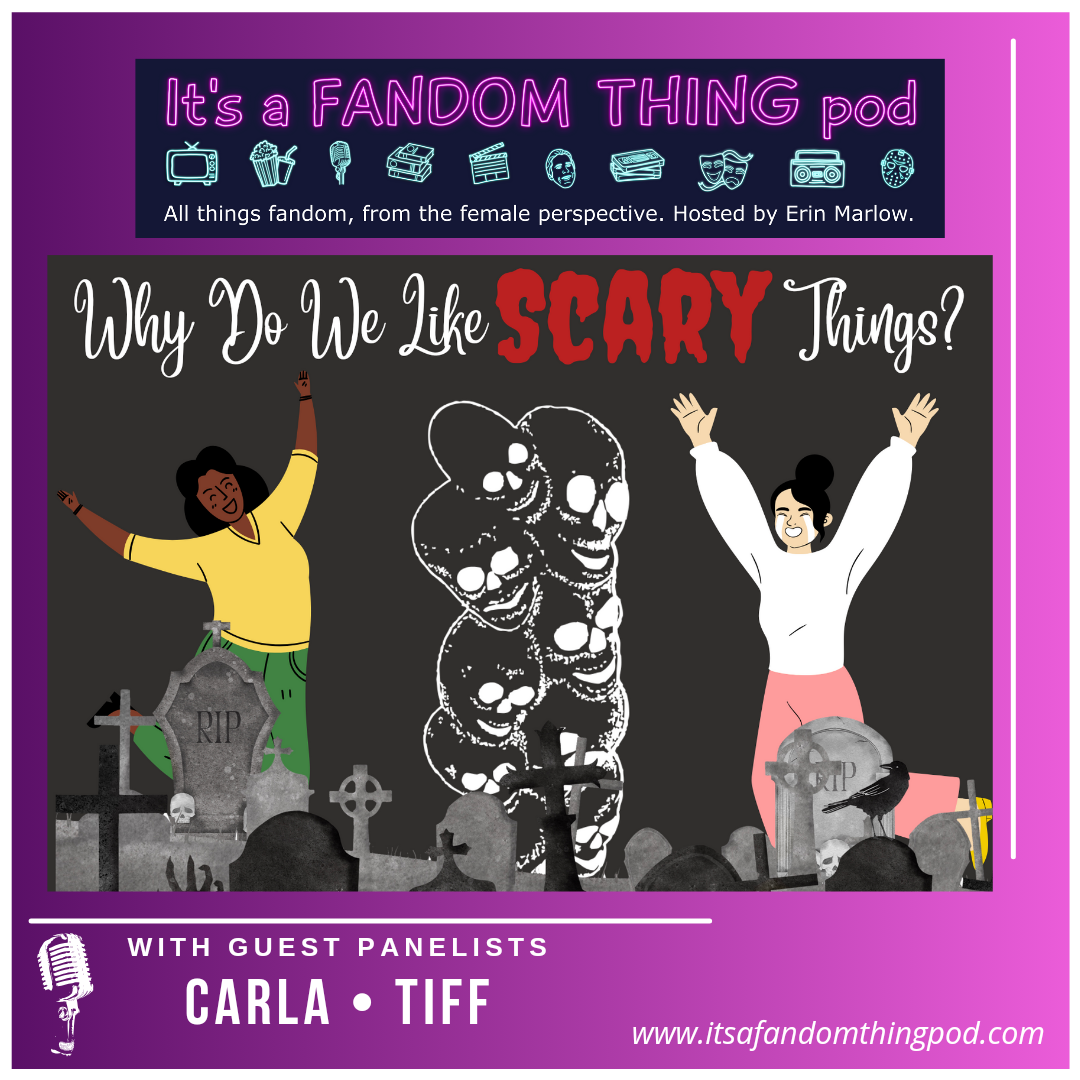 We continue horror month with a look at why we like watching and reading things that scare us. Carla, from Bed, Wed, or Behead Pod, and Tiff join Erin to discuss why they think people like to be scared, the catharsis some people get from horror, talk about how horror can explore political and social issues, and mention why they personally liked to watch and read scary stuff.\nFor some excellent bonus content and ad-free versions, support us on Patreon: https://www.patreon.com/itsafandomthingpod.\nYou can follow us on Facebook: facebook.com/itsafandomthingpod\nTwitter: @fandomthingpod\nInstagram: @itsafandomthingpod\nDiscord: https://discord.com/channels/1042986989349257216/1042987584151879762\nYou can follow Fergie on TikTok: https://www.tiktok.com/@schroederandfergs\nCover art by Carla Temis. Podcast logo by Erin Amos.\nLearn more about your ad choices. Visit megaphone.fm/adchoices
