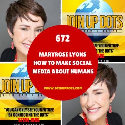 My guest today, on the Steve Jobs inspired Join Up Dots free podcast interview is with a lady who connected with me with the words if you like the cut of my jib" as we say in Ireland. And it was job done, get her on the show. You see not only is she being hugely authentic and not talking the way that businesses try to conduct themselves, she is speaking the language of the receiver and that is so important. So it's with little surprise that I find myself today interviewing a master on Social Media who started her online journey back in the days of the internet being powered by a donkey on a treadmill. Yes, when she started in 1999 there was no Google, No Facebook, not even a tweet or a twit to be seem. She was certainly ahead of the curve, and now has positioned herself as the go to expert for anything social media In fact she is sharing all her expertise with her new online program, \u201cLearn Social Media Like a Pro\u201d, where not only will she give you a step by step process to achieve the traction you want, but you also get lifetime access to the Private Facebook Group where she, along with all the other social media bods will be sharing best practise and helpful support on events as they happen. So why did a lady from Ireland first start her internet career down in Sydney Australia, and was it by complete chance or simply a step on the master-plan of life? And does she agree that the best way to use social media correctly is to make it more about YOU, YOU, YOU and less about ME, ME, ME? Well let's find out as bring onto the show to start joining up dots with the one and only Maryrose Lyons Show Highlights During the show we discussed such weighty topics with Maryrose Lyons such as: Why the world of business is changing from B2B to B2H - Business to human, and how Maryrose is making the most of dealing with this change. Why you shouldn't be everywhere on Social Media but you should focus on reducing the amount of content but increasing the quality of the work you do. Why Maryrose finds being a parent as a real advantage to keeping her hours at a premium, as you can often get caught up with work, work, work which is just not good. Why not having a plan is ok, as you find the real gold when you are wiling to work within the cracks of life more than where everyone walks. and lastly\u2026. Why three is the magic number in so many regards to building a business, especially in regards to choosing a customer. Maryrose shares how she works - and this is gold.