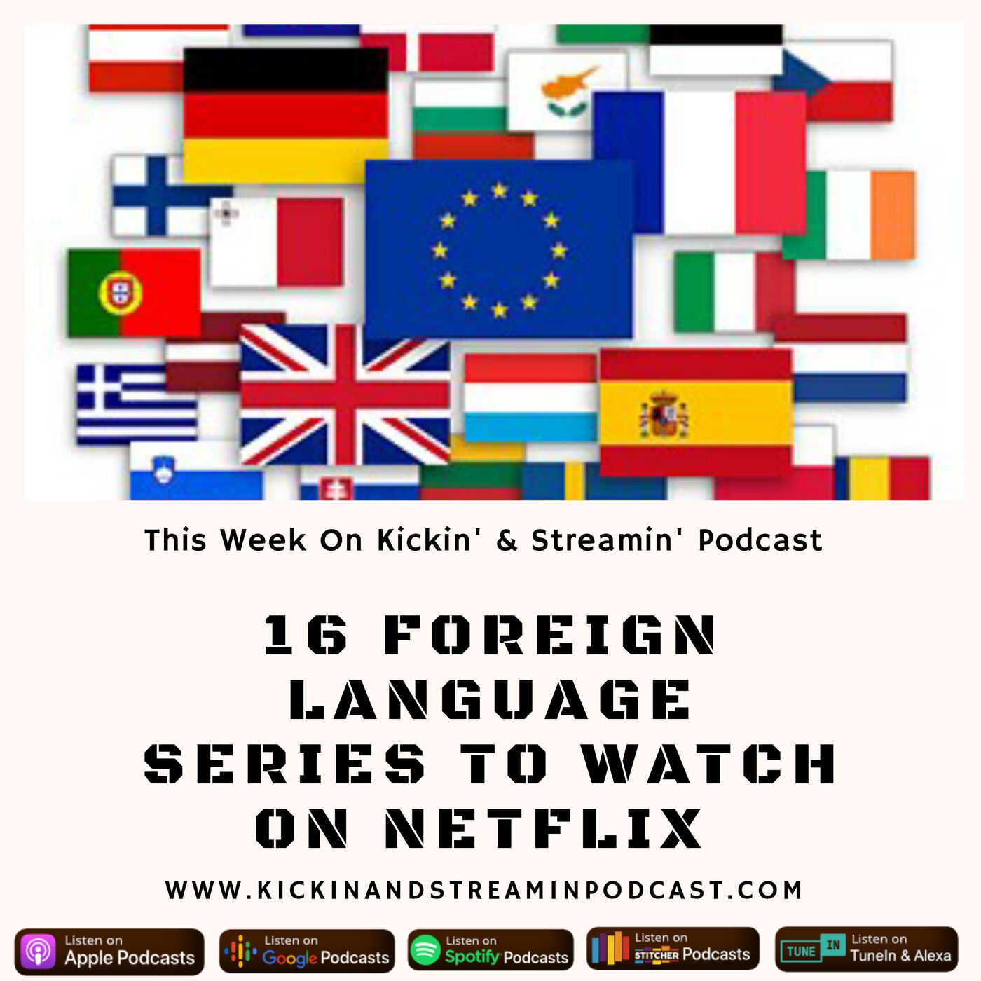On this episode of Kickin' & Streamin' Podcast, Graham and Jocelyn discuss 16 foreign language series available to stream on Netflix. Graham & Jocelyn began by analyzing the possible reasons it's hard for most Americans to get comfortable watching foreign language films or TV series\xa0 with subtitles or dubbed The two co-hosts proceeded to present the TV series made in different countries and in foreign languages; which as equally riveting, interesting and worth watching. Listen to this episode and fell free to tell us if you have a favorite foreign language TV series, and why you enjoy watching these series. If you like this episode, please rate us on your podcast player, and subscribe for future episodes. Subscribe to our YouTube channel, follow us on social media on Faceboook, Twitter, Instagram, and Pinterest. You can also support the show by becoming a Patron on our Patreon page where you'll become eligible for our exclusive patrons-only contents. Finally, we'd like you to visit our merchandise store on Teespring where you can purchase our beautiful and stylish t-shirts, pullover, and mug.