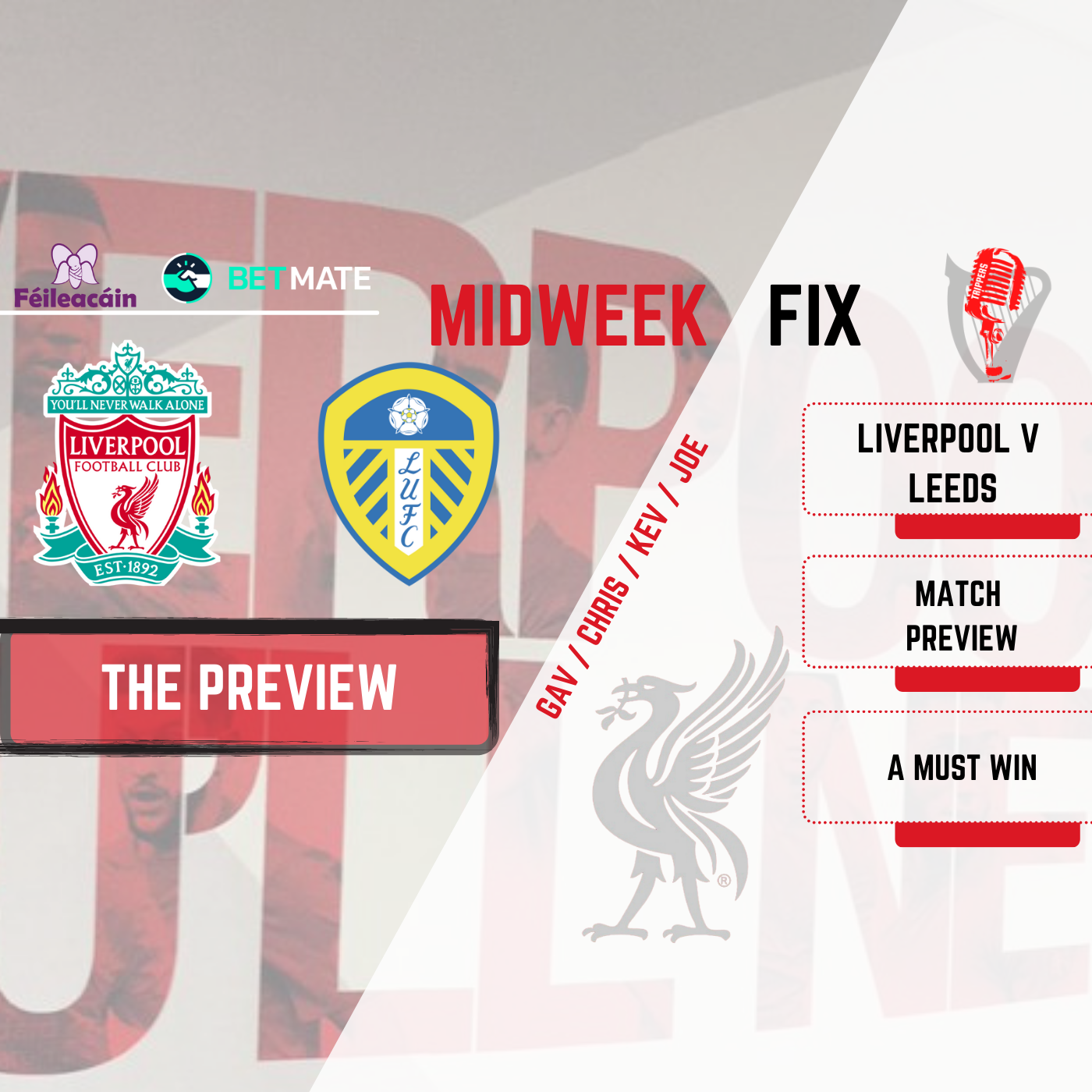 #LFC #LIVLEE #Anfield Liverpool v Leeds Preview A massive game at Anfield between Liverpool and Leeds and we have gav, Kev, Chris and Joe to Preview it!! Support Féileacáin… Please get us to 10k!! Donate here! https://www.idonate.ie/fundraiser/11425598_lfc--daytrippers-s-page.html See https://www.feileacain.ie for more info on an outstanding charity that deserves for us to smash this out of the park!! IP Vanish - 70% off for our listeners by going to https://ipvanish.com/daytrippers Check out BETMATE and how it works https://betmate.app and sign up here.... https://betmate.onelink.me/tFnJ/lfcd Merch - https://www.lfcdt.com/shop Subscribe, Like, Hit the bell icon and never miss another show from the worlds biggest, 100% free LFC Podcast. ** All views on the show are those of the individual and do not represent those of the LFC Daytrippers ** Twitter https://twitter.com/LFCDaytrippers Discord http://discord.gg/QvH6tzu4tq Spotify https://spoti.fi/3f8PVPG Apple pods https://apple.co/3cchQvY Youtube https://www.youtube.com/user/TheLFCDa... Instagram https://www.instagram.com/lfcdaytripp... Intro Graphics done by Mohammed Jogee - Enquiries to enquiries@earthweb.co.za Betmate Video promotion is played under license code ASLC-10639E4B-4520E08299 Copyrighted content “Brutus” owned by Epidemic Sound Don't forget to subscribe or follow, leave reviews if possible and turn notifications on!!! LFC - Liverpool FC - YNWA - LFC Family - Premier League - EPL - Klopp - Transfer News - Redmen News and Chat - Match Preview - Live Updates - Match Predictions - Match Reaction - Football - Soccer - Football Debate - Passion - Opinion - Laughter - Free Content - Competitions - Giveaways - Podcast - Unfiltered - LFC Daytrippers - Champions League - Football Daily - Euro Football Daily Learn more about your ad choices. Visit podcastchoices.com/adchoices