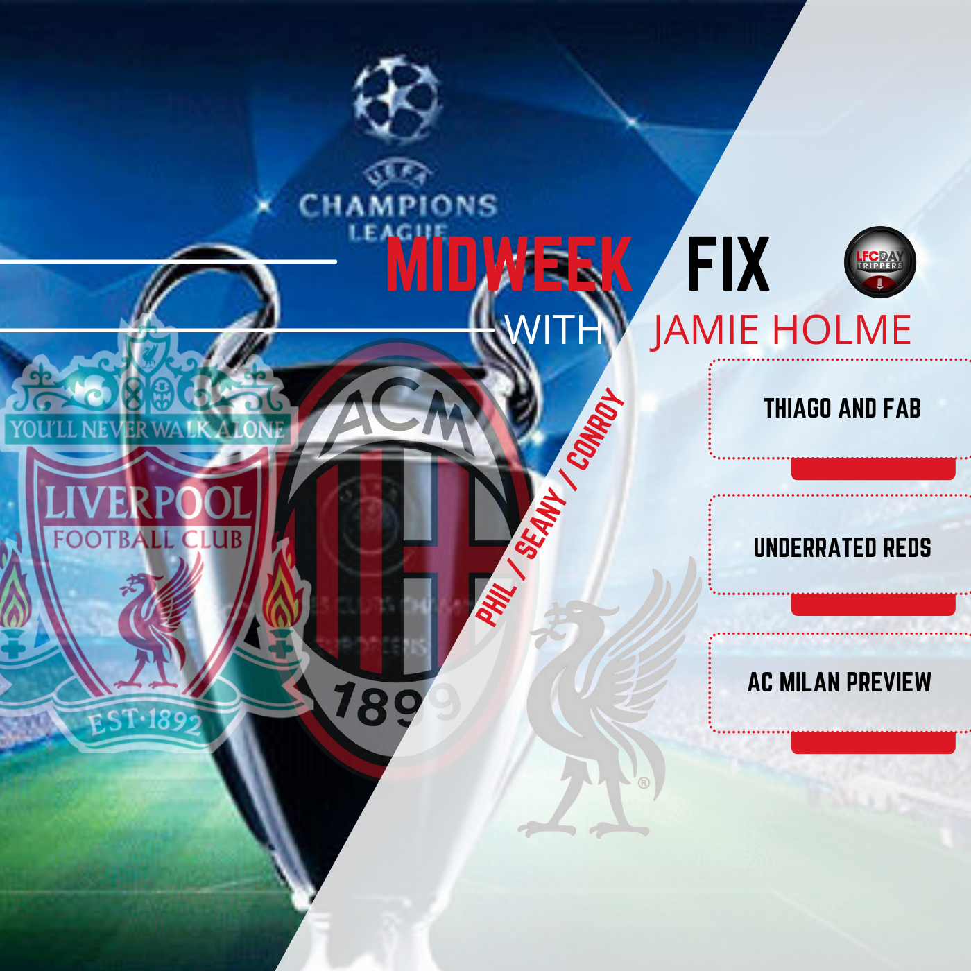 #UCL #LIVACM #Anfield The Midweek Fix look at how underrated Liverpool are and much much more!! Leeds Naivety, Thiago and Fabinho, the attacking rotation, Mane chances, defensive stability, Liverpool underrated, AC Milan game, squad rotation and winners & losers are all up for discussion amongst Jamie, Conroy, Seany and Phil. Our NEW MERCH is available at our online store at https://www.youtube.com/channel/UCKX2COch01WLOK2ykJD11nA/store SELLING OUT ANFIELD FOR SIENNA!! Tickets are €1 and you can buy as many as you like! https://www.lfcdt.com/product-page/siennaanfield Support our Sienna Steps Campaign …. Her story and donation link are here https://lfcdt.com/sienna Every 1000 subs we achieve we will donate €100 to the Sienna Fund! Subscribe, Like, Hit the bell icon and never miss another show from the worlds biggest, 100% free LFC Podcast. ** All views on the show are those of the individual and do not represent those of the LFC Daytrippers ** Discord http://discord.gg/QvH6tzu4tq Spotify https://spoti.fi/3f8PVPG Twitch https://www.twitch.tv/lfcdaytrippers Apple pods https://apple.co/3cchQvY Youtube https://www.youtube.com/user/TheLFCDaytrippers Instagram https://www.instagram.com/lfcdaytrippers/ Newsletter https://www.getrevue.co/profile/LFCDaytrippers Don't forget to subscribe or follow, leave reviews if possible and turn notifications on!!! LFC - Liverpool FC - YNWA - LFC Family - Premier League - EPL - Klopp - Transfer News - Redmen News and Chat - Match Preview - Live Updates - Match Predictions - Match Reaction - Football - Soccer - Football Debate - Passion - Opinion - Laughter - Free Content - Competitions - Giveaways - Podcast - Unfiltered - LFC Daytrippers - Champions League - Football Daily - Euro Football Daily Learn more about your ad choices. Visit podcastchoices.com/adchoices