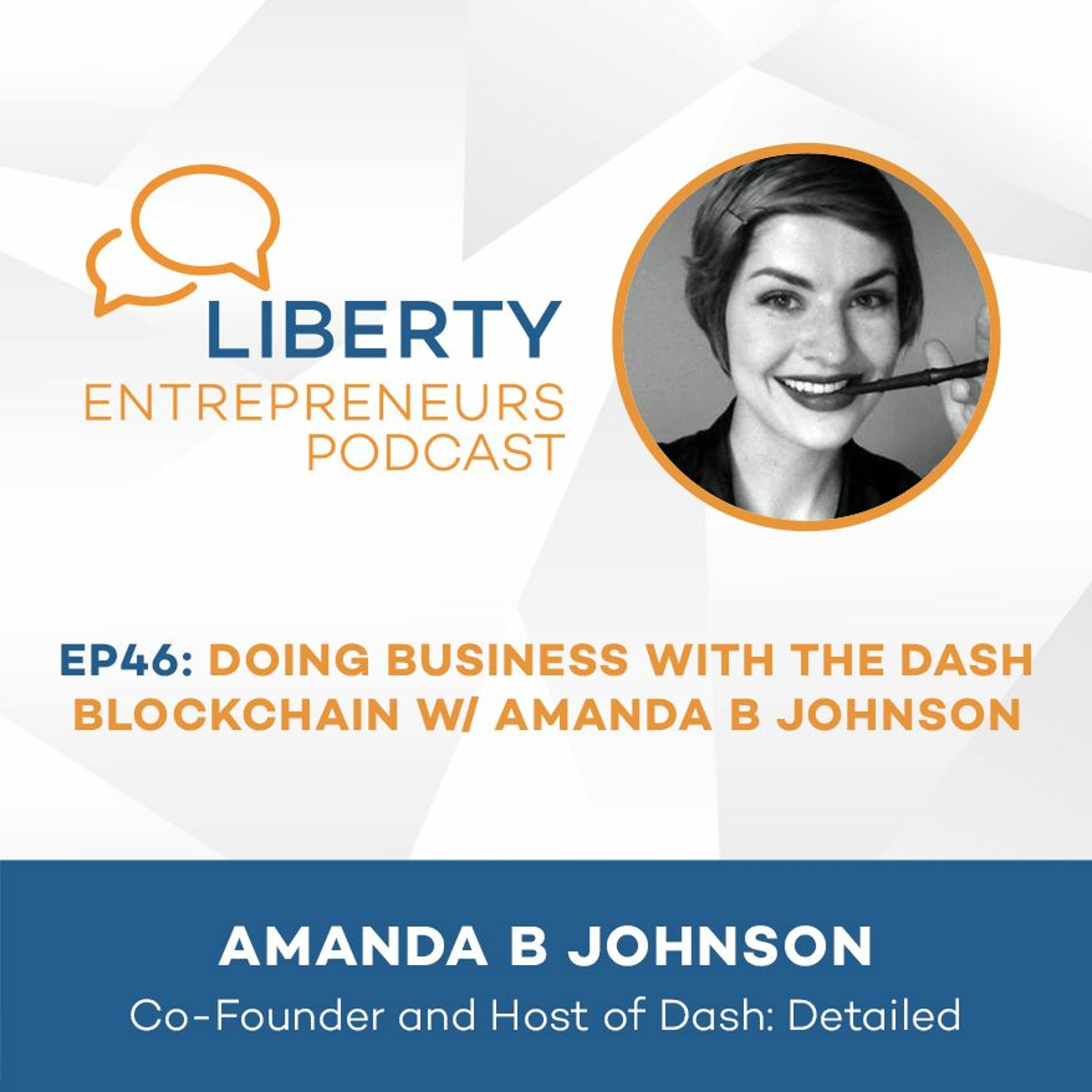 Welcome back! Topics covered in this episode include:\n\nRon Paul and the Modern Freedom Movement\nWhy \u201cmoney\u201d and \u201ceconomics\u201d are important to achieving personal liberty\nEvolution of Crypto-currencies (Bitcoin vs Dash)\nHow Amanda became the first-ever podcast/vblog to get funding DIRECTLY from a blockchain (and why this is a necessary step towards crypto-economic longevity). \nTip Liberty Entrepreneurs with Dash! \n\nXyJPi91jEW6Zqz6qXX1qxzqpqDhUwhT3gf\n\n(or Bitcoin)\n\n1KraNMPw7QMaaLmHsiMj57QKq9GHvZLKgh\n\nAmanda B Johnson started down the rabbit-hole of libertarianism and volunteerism in 2011. At the time she was struggling to find work and became really interested in what caused the economy to become so crappy. She heard about a guy named Ron Paul who was running for President and was shocked when he sounded like he was speaking the truth. \n\nWith her new found enthusiasm, Amanda started creating liberty related, Ron Paul videos on Youtube and quickly gathered following. She became fascinated with money and economics and the role they play in pursuit of personal freedom and wanted to share her new found perspective with the world. \n\nIn 2013, Amanda encountered Bitcoin. Like many of us, she read and studied it with passion and eventually wrote blog posts for several large Bitcoin publications including Bitcoin Magazine, CoinTelegraph, Bitcoin.com. In late 2015, Amanda started a YouTube series entitled The Daily Decrypt, which discussed the currency competition and evolution taking place in the crypto space.\n\nBy mid-2016, she decided to specialize in one network in particular -- Dash -- which she finds to be the most technically and economically superior thus poised to gain strength, market-cap and influence. She named the new show Dash: Detailed.\n\nAmanda and her colleagues are the first ever podcast or video blog to be sponsored and paid DIRECTLY from the Dash blockchain, or any blockchain for that matter. Someone needs to add this to Wikipedia. \n\nA self-funding blockchain this is an evolutionary step for cryptocurrencies. Unlike Bitcoin, the Dash blockchain allocates a certain % of the block-reward (or inflationary payout) to fund projects which help build, support and market their network and is much more business-like in their approach.. Dash: Detailed is showing the world how blockchains and crypto-assets can be used to build and support a voluntary community and economy with a open-source and transparency money. \n\nThanks again for tuning in! \n\nContact Info: \n\nTwitter: @Dashpay\n\nDash: Detailed: https://www.youtube.com/dashorg\n\nReferenced Podcast: \n\nLE41: Generating Passive Income with a Crypto-currency ATM with Cindy Zimmerman - http://libertyentrepreneurs.com/2016/07/le41-generating-passive-income-crypto-currency-atm-cindy-zimmerman/