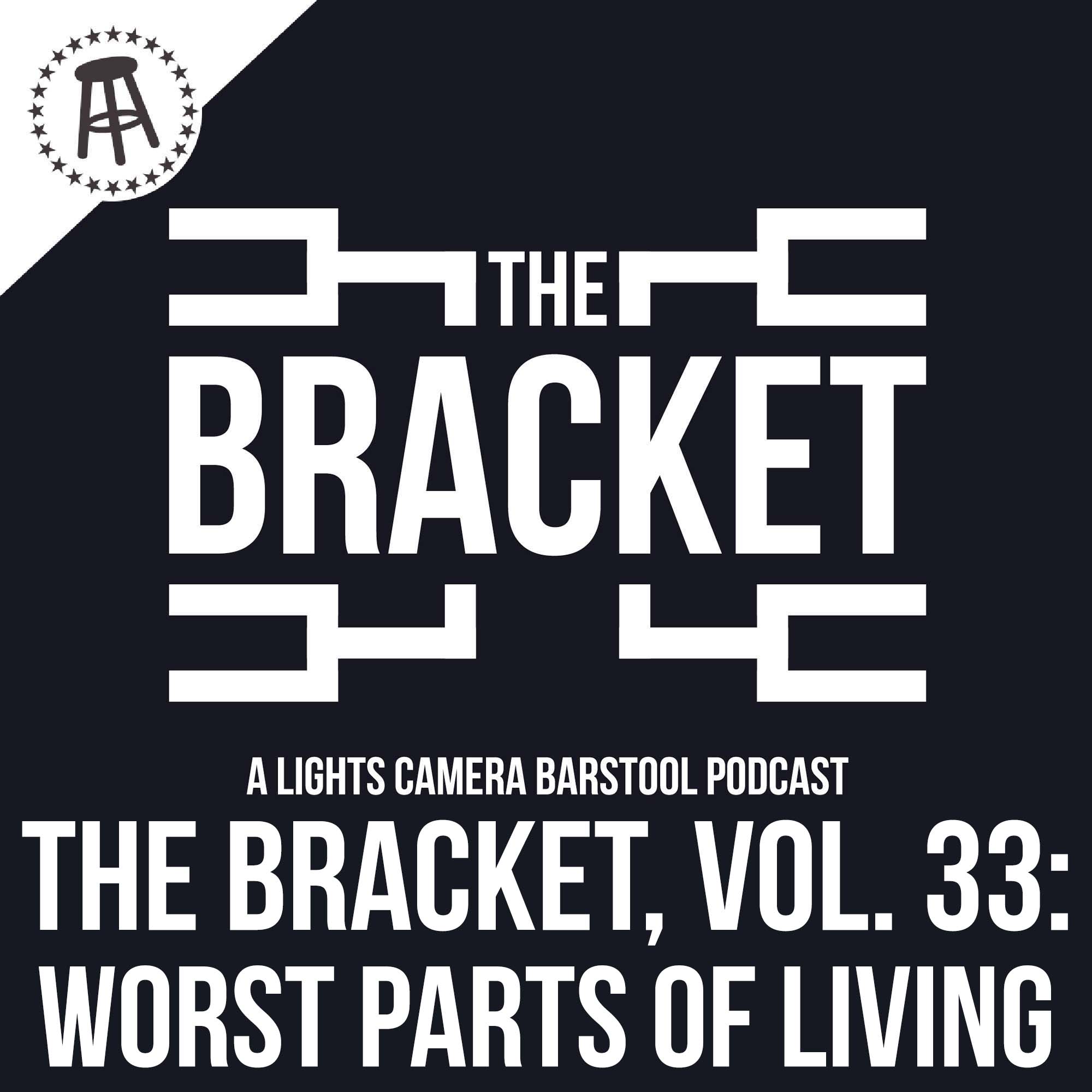 || Movie Rankings/Streaming Database: MovieRankings.net\n\n\n|| Subscribe to our YouTube channel: youtube.com/lightscamerabarstool\n\n\n|| BUY LCB MERCH: store.barstoolsports.com/collections/lights-camera-barstool\n\n\n|| Welcome to VOLUME 033 of THE BRACKET, a Lights Camera Barstool show. In this episode, we decide THE WORST PART ABOUT BEING ALIVE. KenJac is in as host and he's joined by Steven Cheah, Nick, KB, Owen, Tommy, Big T, and Feits. Join us as we go from 16 TERRIBLE THINGS ABOUT LIVING all the way down to 1!\n\n\n|| Follow us on Instagram: instagram.com/lightscamerabarstool\n\n\n|| Follow us on Twitter: twitter.com/LightsCameraPod\n\n\n|| Follow us on TikTok: https://vm.tiktok.com/TTPdUh4sEV/\n\n\n|| Follow us on Facebook: https://www.facebook.com/LCBarstool