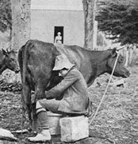 After Whitten\u2019s father died in 1915, the entire family worked to keep their dairy farm going. She describes rounding up the cows for milking and washing clothes in a nearby spring. Part of Whitten\u2019s responsibilities included churning cream and clabber into butter and buttermilk. She recounts feeling heartbroken once after accidentally spilling the contents of the churn.