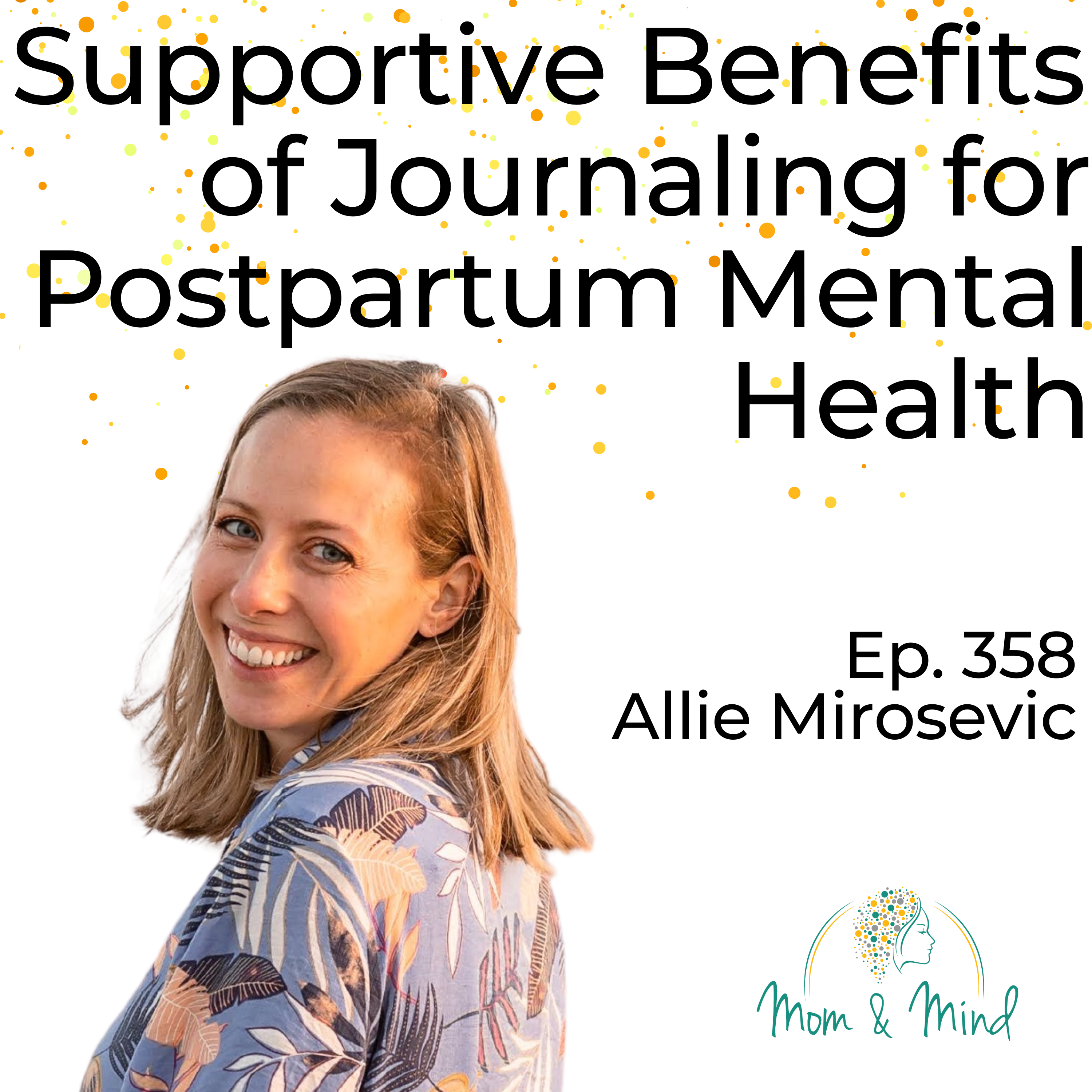 Many times, the path to healing isn\u2019t one specific thing but a combination of things, and journaling is certainly one beneficial activity in all kinds of healing processes. Today\u2019s episode will be helpful to you if you are facing challenges and need a healthy way to process thoughts and feelings. Learn more with us in this episode!\nAllie Mirosevic is a wife, a mom of two, and an entrepreneur who lives in Los Angeles. She founded Bliss'd, a self-care brand aimed at helping fellow moms live more joyful and fulfilling lives through the power of journaling. After discovering her love of journaling in 2019 following her first challenging postpartum experience, her passion became helping other moms experience the transformative benefits of journaling through her easy-to-use gratitude and connection journals. Along with simple journaling tips, Allie joins us to share her journey through postpartum depression and how she treated the issues and found healing.\xa0\nShow Highlights:\n\nAllie\u2019s story: a native Chicagoan transplanted in LA, a BIG pivot in careers, the plunge into entrepreneurship, and a difficult postpartum experience that fully revealed her purpose and passion\n\nAllie\u2019s postpartum challenges in 2019 with the birth of her son\n\nFinding support through medication, therapy, and journaling\n\nThe big question when beginning to journal is, \u201cWhat do I write?\u201d\n\nFact: The blissful newborn experience is NOT every mother\u2019s reality.\n\nAllie\u2019s experience as a new journaler: blank journal vs. guided journal?\n\nNavigating a journaling practice as a very busy mom (Start with 5 minutes to build new skills and habits.)\n\nAllie\u2019s takeaway for listeners about the benefits of journaling\n\nResources:\nConnect with Allie Mirosevic: \xa0Website and Instagram\nPlease find resources in English and Spanish at Postpartum Support International, or by phone/text at 1-800-944-4773. There are many free resources, like online support groups, peer mentors, a specialist provider directory, and perinatal mental health training for therapists, physicians, nurses, doulas, and anyone who wants to be a better support in offering services.\xa0\nYou can also follow PSI on social media: Instagram, Facebook, and most other platforms\nVisit www.postpartum.net/professionals/certificate-trainings/ for information on the grief course.\xa0\xa0\nVisit my website, www.wellmindperinatal.com, for more information, resources, and courses you can take today!