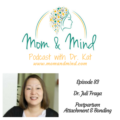 We are getting into some good stuff today about attachment and bonding in new parenthood. We are talking again with Dr. Juli Fraga about what all of this means and what it means for you and your baby. In particular, what might be going on for a mother experiencing a perinatal mood change.\n*We will be touching on the difference between attachment and bonding.\n*What can happen in new parenthood when a mother or father is struggling.\n*We touch on the ever present shame and guilt.\n*Getting support for your perinatal mood change can support good bonding and attachment.\n*That you don\u2019t need to be perfect in order to have a good connection.\nConnect with Dr. Fraga!\nTwitter @dr_fraga\nwww.drjulifraga.com\nDr. Juli Fraga is a psychologist in San Francisco where she specializes in maternal mental health concerns.\xa0Dr. Fraga is also a freelance health writer and she's written about women's health concerns for Refinery29, NPR, Quartz, Psychology Today, The Huffington Post and the Washington Post.\n\xa0\nFor this and all episodes of Mom & Mind, please find us at\nwww.momandmind.com\nConnect with us!\nFacebook: Mom & Mind\nFacebook Group: Mom & Mind Connection\nTwitter: @drkaeni\nInstagram: @momandmind\nFor Sponsorship and Guest Inquiries, please email momandmind@gmail.com\nDr. Kat meets with clients in her Claremont, CA office or Online with anyone in the state of California. If you're looking for help, please reach out drkaeni@gmail.com