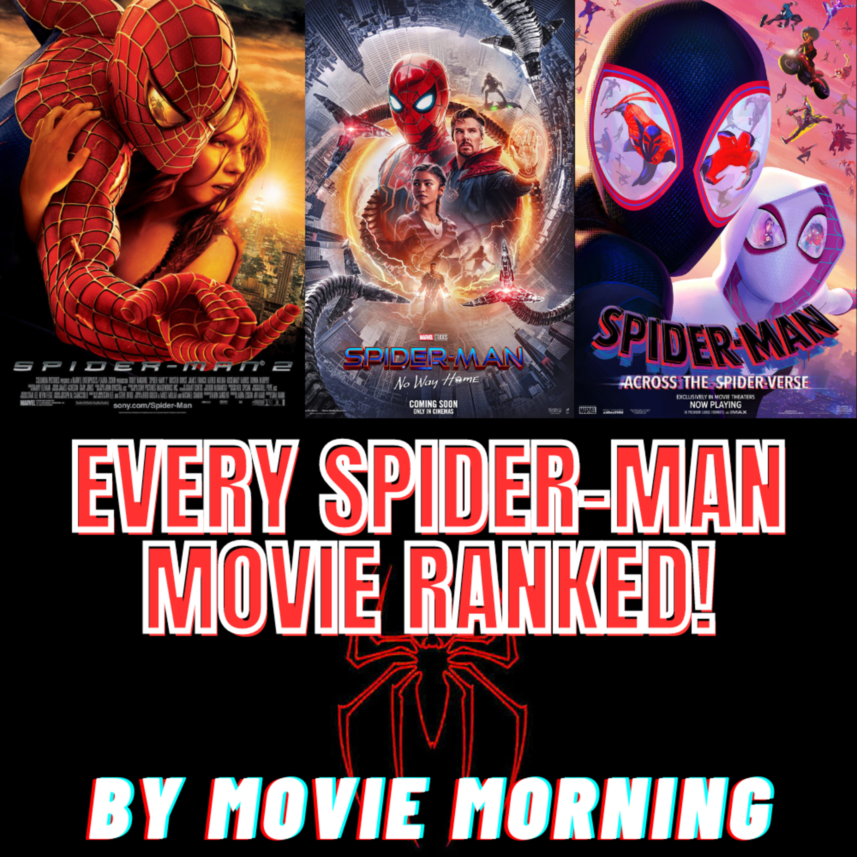 Hey everyone, Spider-Man: Across the Spider-Verse, one of the greatest comic book movies I've ever seen, has been out in theaters and I have been dying to stack it up against some of my other favorite Spider-Man movies, ranking all of the theatrically-released ones from worst to best. This is a list I have updated many times and will continue to update because Spider-Man is one of my favorite characters of all-time. I will not be including the Venom movies or Morbius because those are Spidey-spinoffs and I am specifically discussing the SPIDER-MAN movies here. That Sony-verse ranking will be updated when Kraven comes out later this year. This ranking will include SPOILERS for every movie listed below EXCEPT Across the Spider-Verse. Enjoy!\nMovies to rank:\nSpider-Man (2002)\nSpider-Man 2 (2004)\nSpider-Man 3 (2007)\nThe Amazing Spider-Man (2012)\nThe Amazing Spider-Man 2 (2014)\nSpider-Man: Homecoming (2017)\nSpider-Man: Into the Spider-Verse (2018)\nSpider-Man: Far From Home (2019)\nSpider-Man: No Way Home (2021)\nSpider-Man: Across the Spider-Verse (2023)