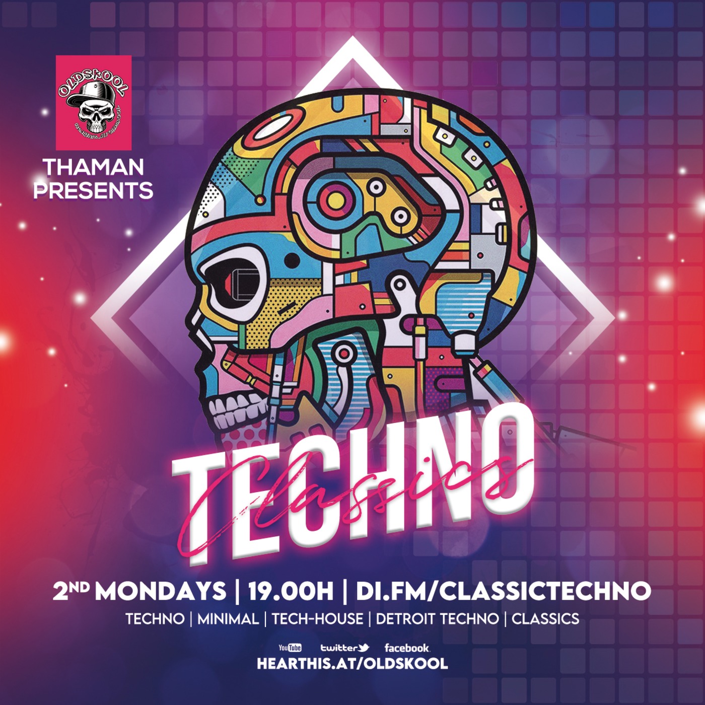Every 2nd Monday of the month, 19:00 - 20:00 on the [Oldschool Techno & Trance](https://www.di.fm/classictechno) channel