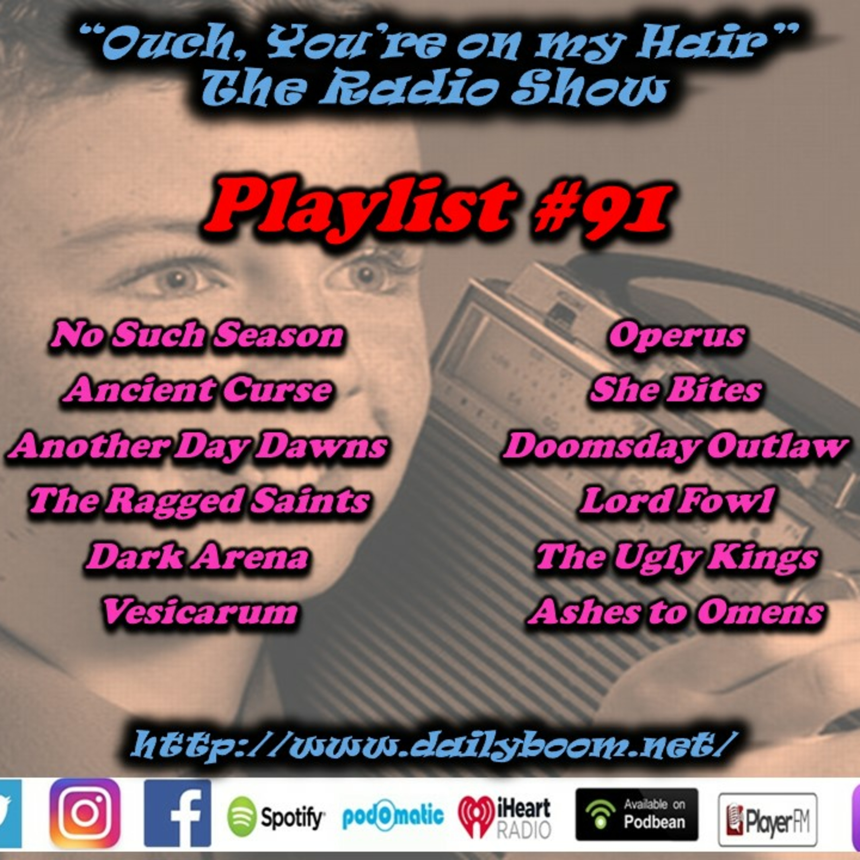 Welcome back to the Radio Show and Playlist #91. This week, Ouch, You're on my Hair presents the following the bands: