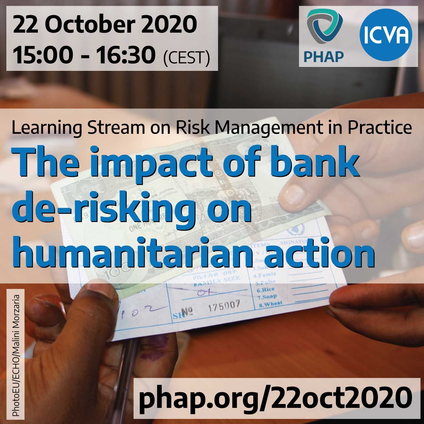 On 22 October, ICVA and PHAP organized a webinar focusing on bank de-risking and its impact on humanitarian action. Following an introductory briefing, we discussed with a panel of experts the practical challenges faced by humanitarian NGOs and how to approach this issue from a risk management perspective.