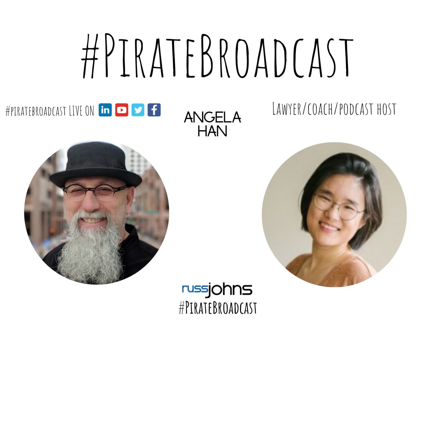 Today on the #PirateBroadcast Russ Johns talks to Angela Han doing #Interestingthings. Angela has suffered from bulimia and depression and anxiety during her life, so she decided to help other people with their problems as well. She does personal training and health coaching. Angela is also a Health attorney, find out what that means if you Watch this #PirateBroadcast