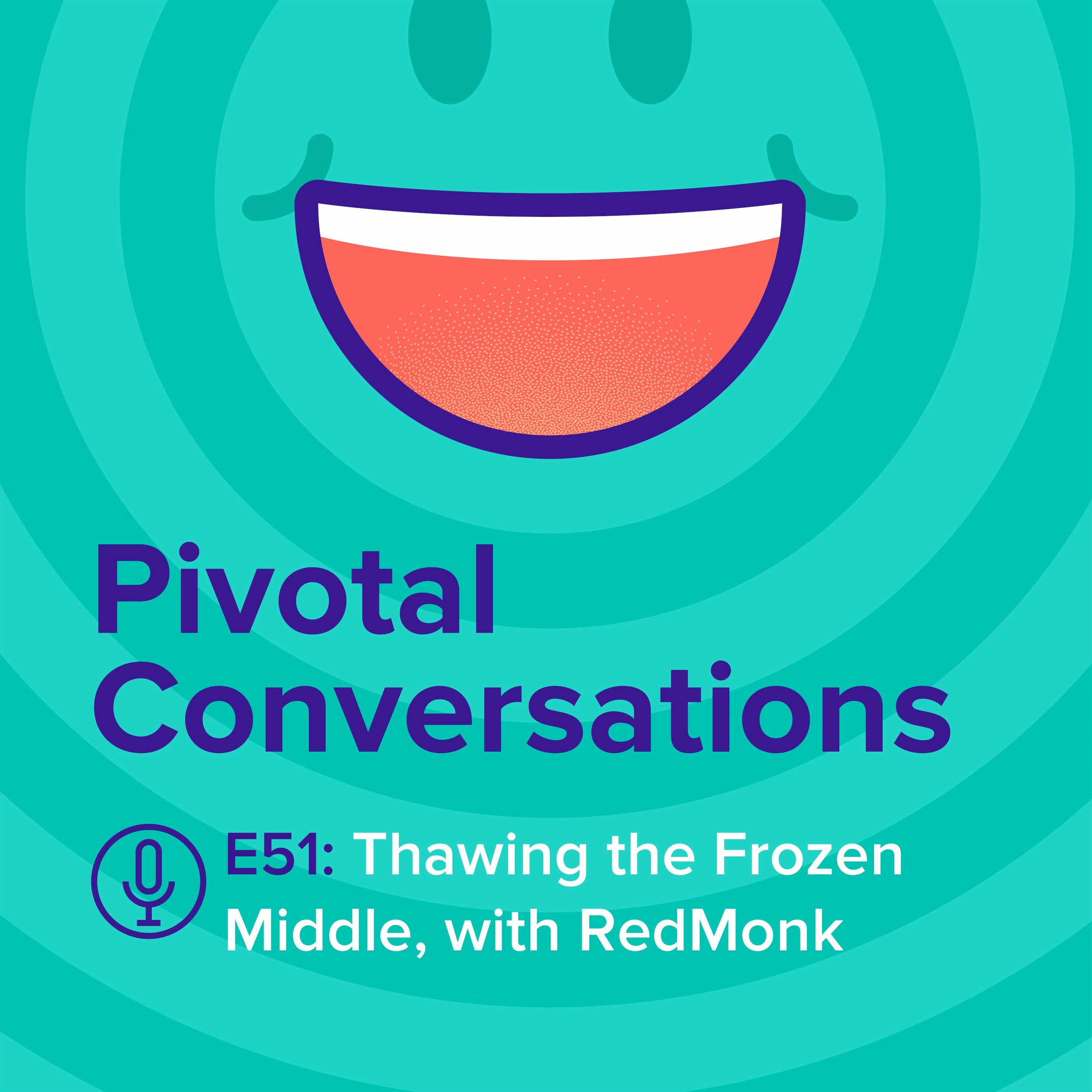 Improving how you do software requires changing how every layer your organization's functions day-to-day, from executive leadership, to middle-management, and staff. Often, middle-management is resistant to change and acts as a "frozen middle," slowing and sabotaging leadership and staff's desires to change. Along with Pivotal's Dormain Drewitz, we're joined by RedMonk's Rachel Stephens and Stephen O'Grady to discuss this frozen middle problem and tactics to thaw it. See full shows and more at http://pivotal.io/podcasts