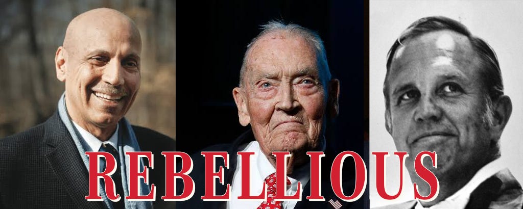 Ralph has a new book out,\xa0The Rebellious CEO: 12 Leaders Who Did It Right\xa0and in this episode, we profile three of them, Andy Shallal, owner of the restaurant \u201cBusboys and Poets,\u201d John Bogle, founder of the Vanguard Group, and Robert Townsend, iconoclastic CEO of Avis Rent-a-Car and author of the classic business book \u201cUp The Organization!\u201d Mr. Shallal joins us in person while financial advisor and Boglehead, Rick Ferri, talks to us about the late John Bogle and Robert Townsend Jr. explains the origins of his father\u2019s philosophy. Plus, Ralph gives us an update and a call to action on Gaza.