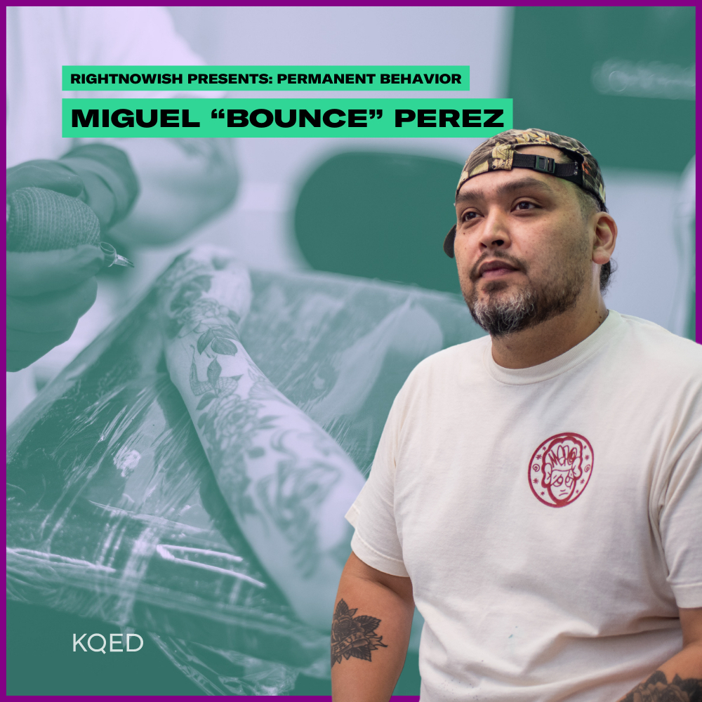 Our series, Permanent Behavior: Getting Tatted in the Bay, starts with tattoo artist\xa0Miguel "Bounce" Perez.\nPerez has vivid childhood memories of art created by his family:\xa0His mother drew \u201cchola-style\u201d portraits of women with feathered hair and sharp brows, while his uncles created lettering in Cali-Chicano Old English script. His father was part of a car club in his West Berkeley community, a neighborhood that was also home to a number of aerosol graffiti murals.\nAll of this poured into Perez, and laid the foundation for what he does today.\nHe's a versatile artist, who sees collaboration with his clients as central to his work. He's done touch-ups for people who've been incarcerated, and even inked a team of mathletes. His art is detailed and graphic, ranging from Mayan Goddesses to anime characters.\nPerez says he doesn't have a "specialty," but he often does cover-ups of older tattoos; a community service of sorts. He's also part of the art collective Trust Your Struggle, which paints murals in countries for historically colonized and under-resourced communities.\nGiven Perez's experiences with both impermanent aerosol and indelible ink, we figured he'd be the best person to start this exploration into the culture of tattooing in the Bay Area, and what it feels like to create permanent artwork-- if such a thing exists.\nRead the transcript here.\xa0\nLearn more about your ad choices. Visit megaphone.fm/adchoices