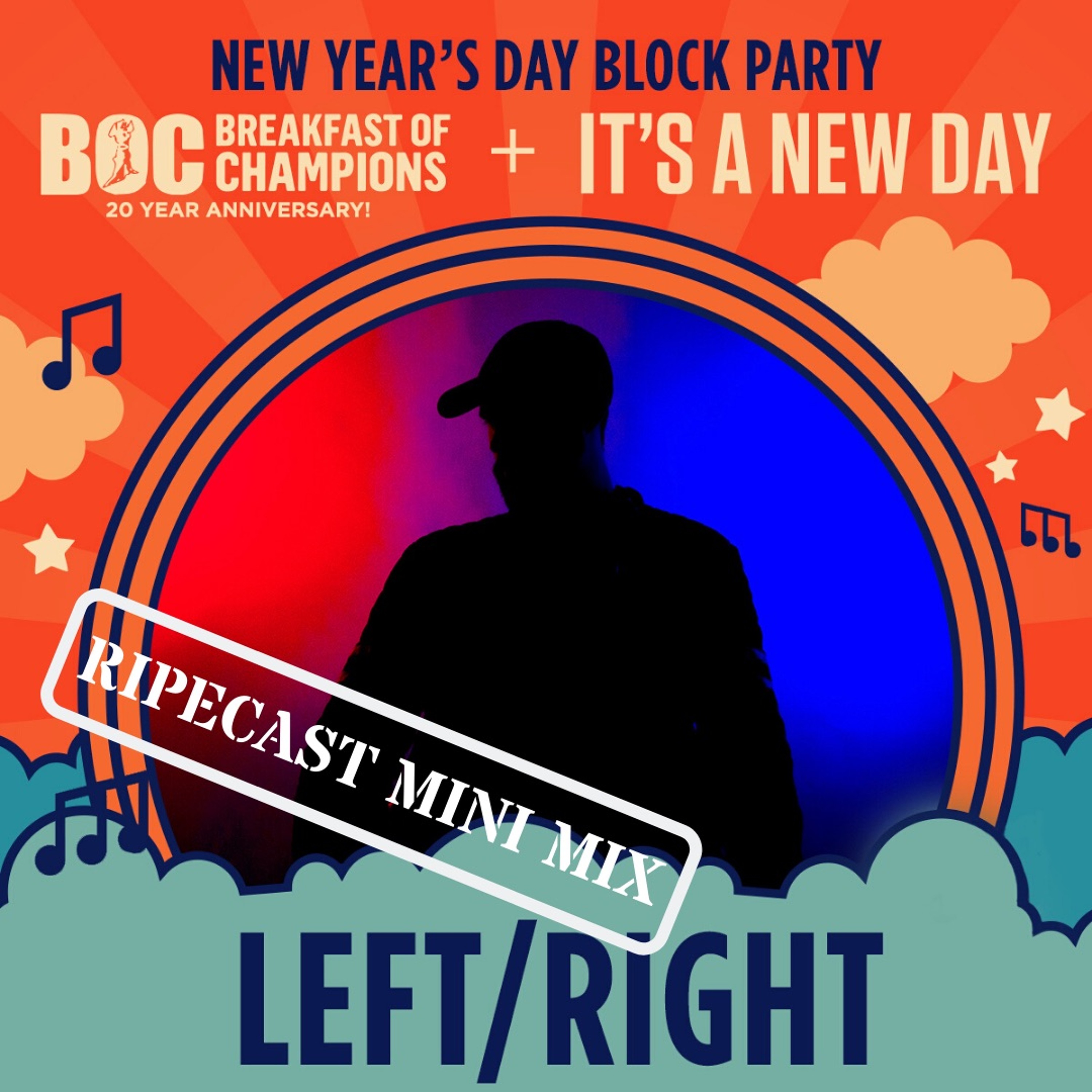 On this weeks episode of the Space Cowboys RIPEcast, we have a special Breakfast of Champions mini mix from Punks, Dirtybird, and Mau5trap recording artist, LEFT/RIGHT. You won\u2019t want to miss his live performance at the 20th anniversary of Breakfast of Champions on New Years Day in San Francisco. Enjoy the mix!\n\n\nEvent info and tickets to the BOC+IAND 2020 in San Francisco here:\nhttps://www.facebook.com/events/2509907099290212/\nhttps://www.eventbrite.com/e/its-a-new-day-breakfast-of-champions-block-party-2020-tickets-75027436081?aff=ebdssbeac \n\nCheck out more from Left/Right here:\nhttps://soundcloud.com/leftrightmusic\nhttps://www.facebook.com/LeftRightMusicOfficial/\nhttps://www.instagram.com/leftrightmusic/\nhttps://www.youtube.com/user/leftrightmusic\nhttps://open.spotify.com/artist/51CYFAd4sqtPffWlLpAVQ4