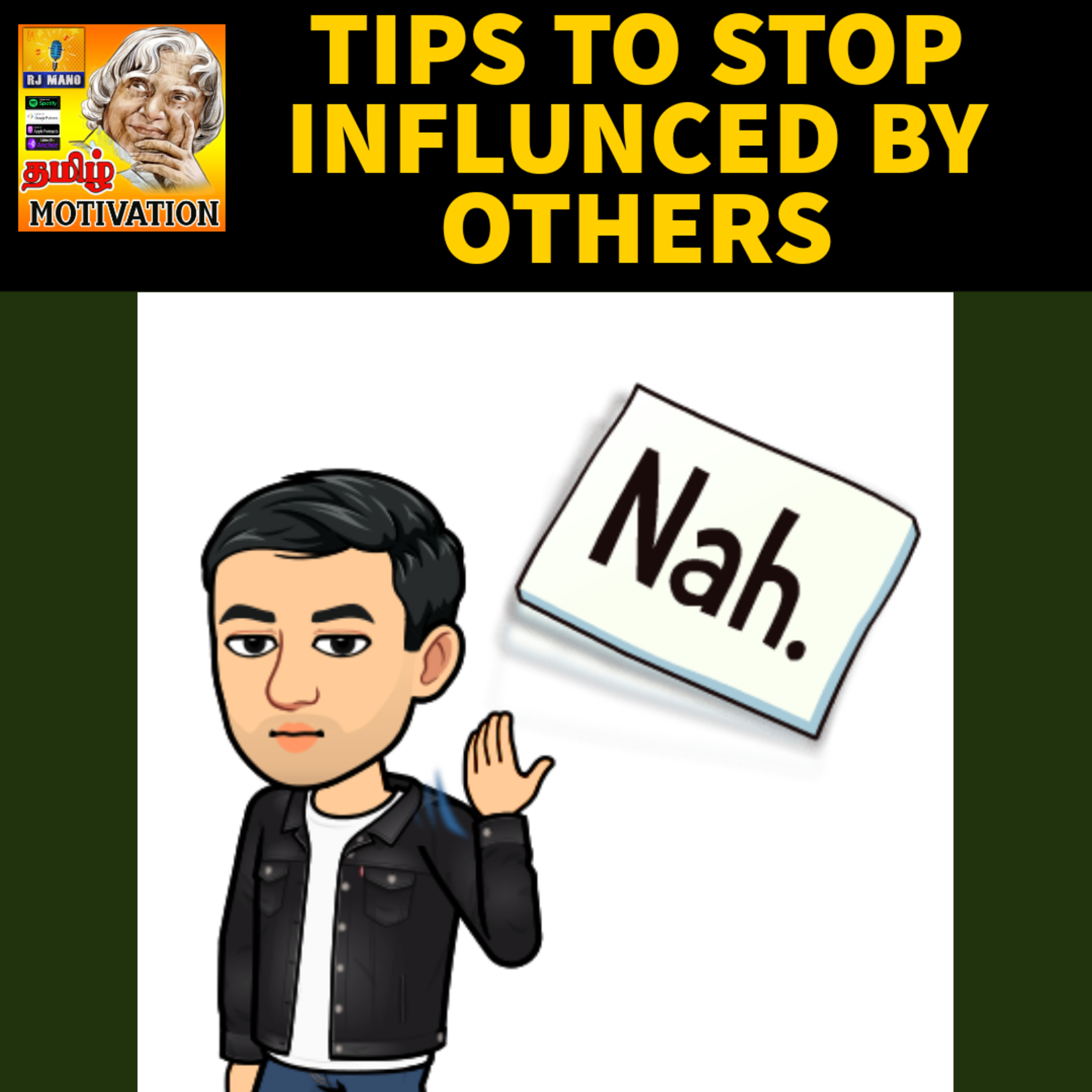 Dear Friends\u2764\u2764, Hope you are doing fantastic. I wish you for your happy life \U0001f60d\U0001f60d. This episode delivers you about " \U0001f525\U0001f525\u0b85\u0bb5\u0bb0\u0bcd\u0b95\u0bb3\u0bcd \u0baf\u0bbe\u0bb0\u0bcd \u0b89\u0b99\u0bcd\u0b95\u0bb3\u0bc8 \u0b87\u0baf\u0b95\u0bcd\u0b95|TIPS TO STOP INFLUENCED BY OTHERS|Tamil Self Help Motivational .\U0001f64f please connect with me on my instagram page : https://instagram.com/rjmano_\xa0\xa0\xa0\xa0\xa0\xa0\xa0\xa0\xa0\xa0\xa0\xa0\xa0\xa0 \U0001f64f\U0001f64fPlease rate this podcast in Spotify and Apple podcast to support \U0001f64f\U0001f64f also, please follow and subscribe from the podcast platform you are listening. \U0001f44d\U0001f64f\U0001f64f\U0001f60a\U0001f60a\U0001f60a\U0001f60a\xa0 have a great life ! Take care friends.\xa0 Email: rjmano.passionate@gmail.com .\xa0\xa0\xa0\xa0\xa0\xa0\xa0 "\u0b9a\u0bbf\u0bb0\u0bbf\u0b95\u0bcd\u0b95\u0bbf\u0ba9\u0bcd\u0bb1 \u0baa\u0bcb\u0ba4\u0bbf\u0bb2\u0bc1\u0bae\u0bcd , \u0ba8\u0bc0 \u0b85\u0bb4\u0bc1\u0b95\u0bbf\u0ba9\u0bcd\u0bb1 \u0baa\u0bcb\u0ba4\u0bbf\u0bb2\u0bc1\u0bae\u0bcd , \u0bb5\u0bb4\u0bbf \u0ba4\u0bc1\u0ba3\u0bc8 \u0baa\u0bcb\u0bb2\u0bb5\u0bc7 , \u0b8e\u0ba8\u0bcd\u0ba4\u0ba9\u0bcd \u0b95\u0bc1\u0bb0\u0bb2\u0bcd \u0ba4\u0bcb\u0ba9\u0bcd\u0bb1\u0bc1\u0bae\u0bc7 ! "
